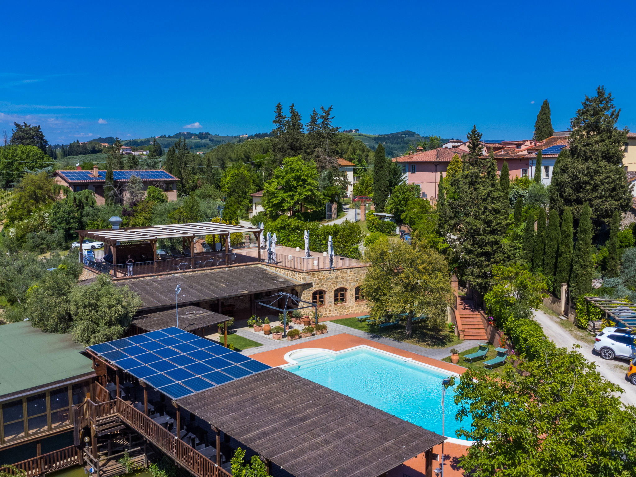 Landwirtschaftlicher Betrieb "Cameli", auf 3 Stockwerken, umgeben von Feldern und Weinbergen. 6 Wohnungen in der Residenz. 5 km vom Zentrum von Certaldo, 35 km vom Zentrum von Firenze, 13 km vom Zentrum von S. Gimignano, sonnige Lage am Hang. Zur Mitbenutzung: Grundstück 150'000 m2 mit Bäumen, Obstgarten, Teich, Schwimmbad (14 x 8 m, 110 - 250 cm tief, saisonale Verfügbarkeit: 11.Apr. - 31.Okt.). Pergola, Gartenmöbel, Grill. Im Hause: Restaurant, Frühstücksraum. Frühstück möglich (extra). 600 m lange holprige Zufahrt. Parkplatz auf dem Grundstück. Supermarkt 5 km, Bushaltestelle 600 m. Bitte beachten: Babyausstattung (inkl.). Geeignet für Events. Ab Hof Verkauf von bäuerlichen Produkten. Der Besitzer wohnt auf dem gleichen Grundstück. Alle Häuser/Wohnungen sind individuell eingerichtet. Öffentliches Restaurant, gelegentlich finden hier Events statt.
