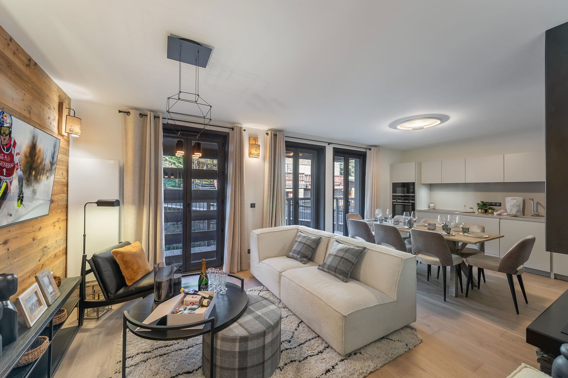 Komplett neue Wohnung mit 4 Schlafzimmern von 117 m², die Platz für 8 Erwachsene bietet. Dieses Apartment befindet sich in der ALPAMAYOR-Residenz, nur wenige Schritte von den Geschäften und einen Steinwurf von den Pisten entfernt. Es umfasst: