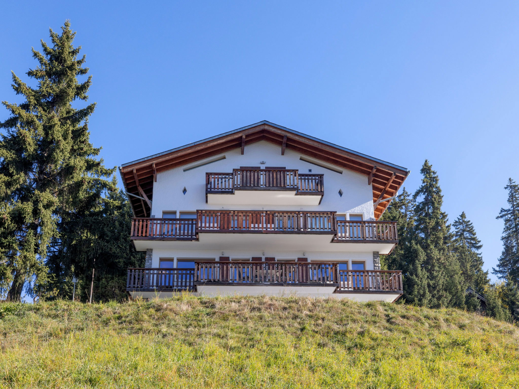 Komfortables Dreifamilienhaus "Les Aiguilles Vertes", auf 4 Stockwerken, Baujahr 1962, renoviert im Jahre 2015. Im Ortsteil Vermala, 1.7 km vom Zentrum von Montana, ruhige, erhöhte Lage, 1.5 km vom See, 1.1 km vom Skigebiet, Richtung Südwesten. Zur Mitbenutzung: naturbelassenes Grundstück 1'273 m2. Im Hause: Skiraum, Zentralheizung, Waschmaschine, Wäschetrockner (zur Mitbenutzung), Skischuhtrockner. Zufahrt (Rampe). Einzelgarage. Einkaufsgeschäft 1.7 km, Supermarkt 1.9 km, Restaurant 1.5 km, Bäckerei 2 km, Bushaltestelle "Vermala Centre" 200 m, Bahnstation "Funiculaire Montana Gare" 2.1 km, Badesee "Moubra" 2.7 km, See Grenon 1.5 km. Golfplatz (18 Loch) 2.8 km, Skisportanlagen 1.1 km. Bekannte Skigebiete sind gut erreichbar: Etang Long 2.9 km. Bitte beachten: Gratis Skibus.