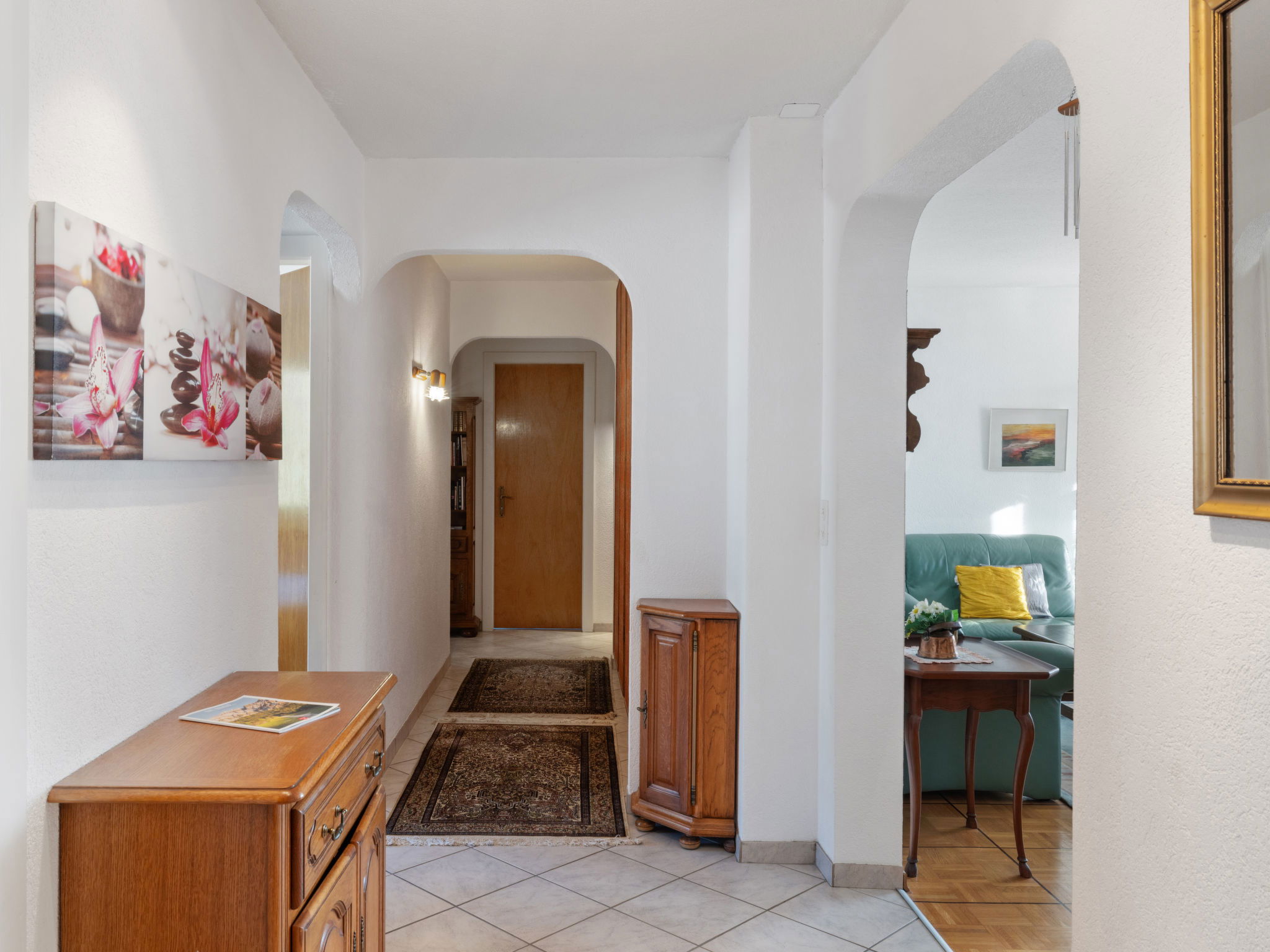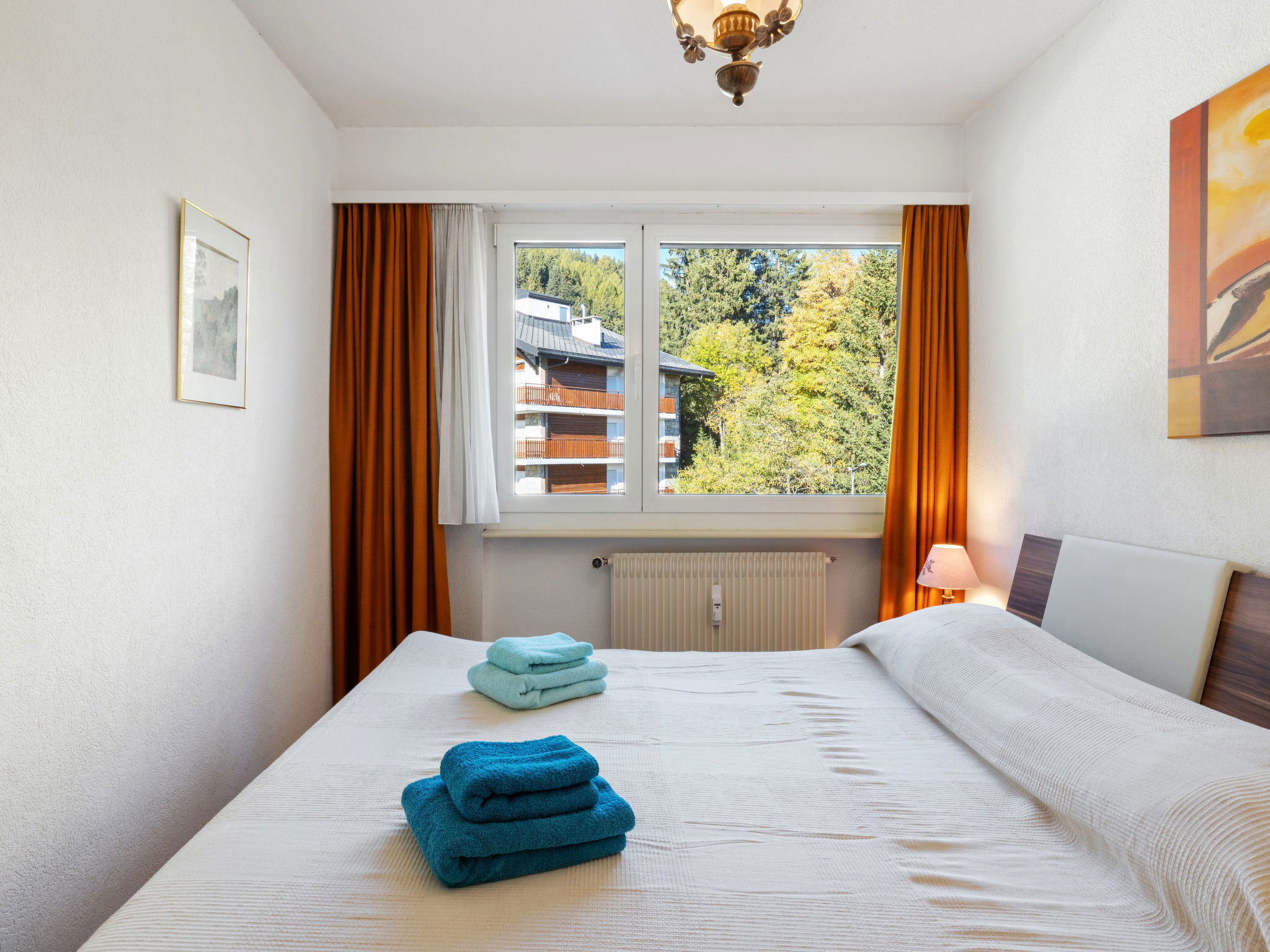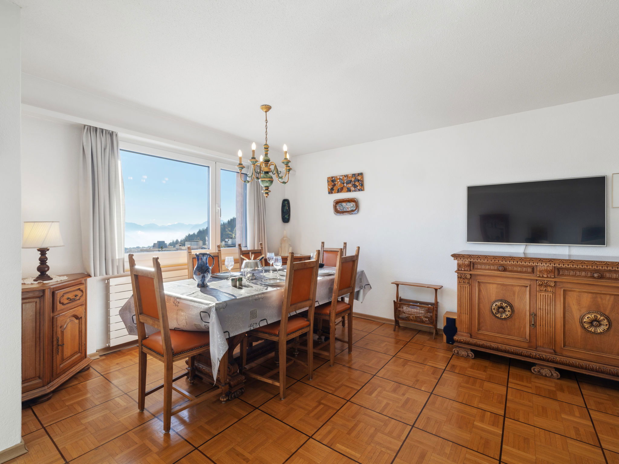 "Vermala Soleil B 13 COMBI", 4-Zimmer-Wohnung 100 m2 im 4. Stock. Geräumig und hell, komfortabel und schön eingerichtet: Wohn-/Esszimmer mit Kabel-TV (Flachbildschirm), Stereoanlage, DVD und DVD Sammlung vorhanden. 1 Zimmer mit 1 franz. Bett (180 cm, Länge 200 cm). 1 Zimmer mit 1 Doppelbett (2 x 90 cm, Länge 200 cm). 1 Zimmer mit 1 Doppelbett (2 x 90 cm, Länge 200 cm), Kabel-TV. Ausgang zum Balkon. Grosse Küche (Backofen, Geschirrspüler, 4 Glaskeramikplatten, Toaster, Wasserkocher, Mikrowelle, elektrische Kaffeemaschine, Kapseln für die Kaffeemaschine (Nespresso) extra, Racletteofen, Fondue Set (Chinoise, Käse)). Bad/WC, Dusche/WC. Grosser Balkon 15 m2, Südlage und Westlage. Balkonmöbel, Liegestühle (2). Sehr schöne Panoramasicht auf die Berge, das Tal und die Ortschaft. Zur Verfügung: Waschmaschine, Wäschetrockner, Bügeleisen, Haartrockner. Internet (WLAN, gratis). Garage Nr. lettre O in 100 m, Höhe 178 cm, Breite 240 cm. Bitte beachten: Nichtraucher-Unterkunft. Maximal 1 Haustier/Hund erlaubt.