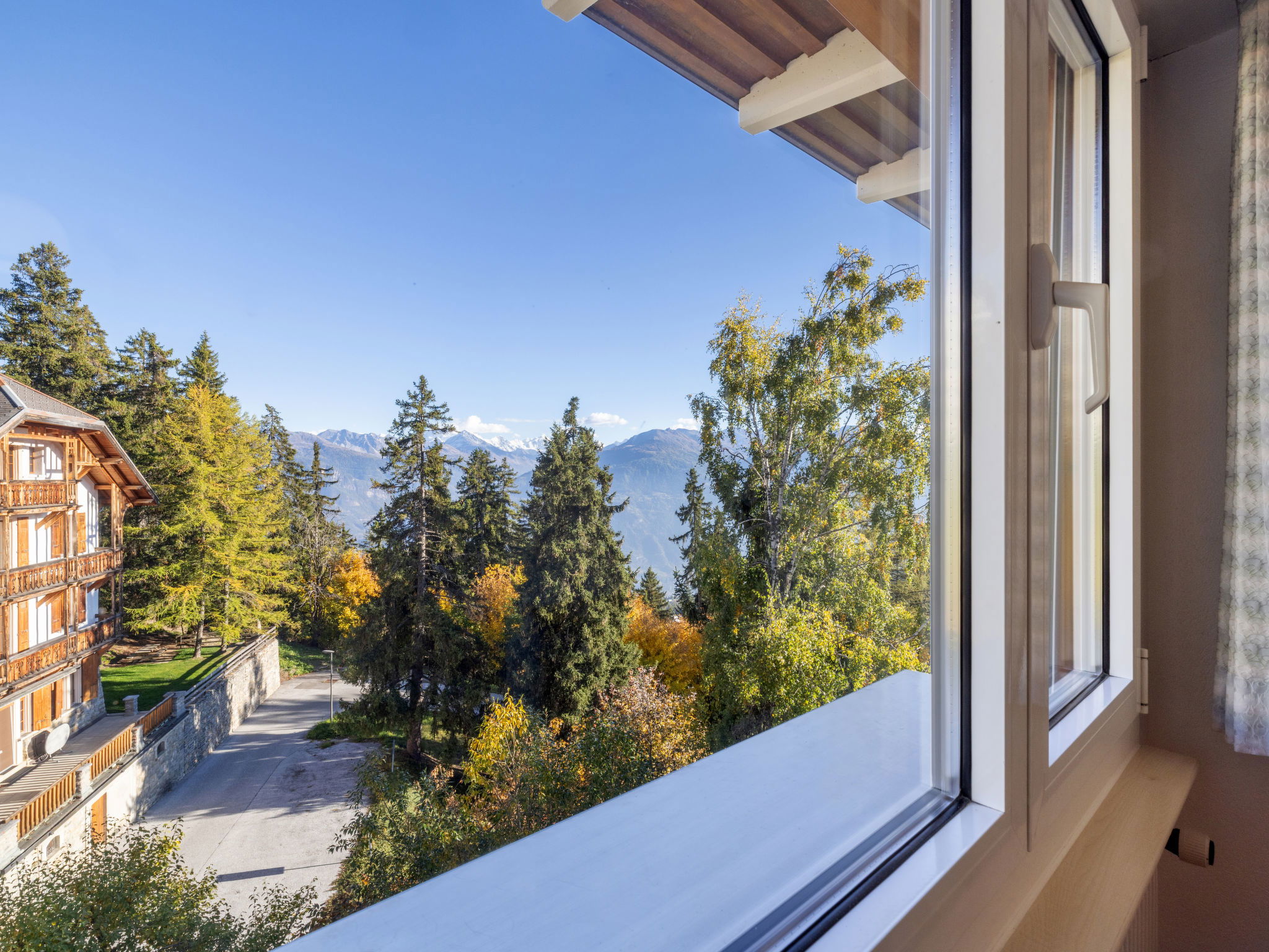 Mehrfamilienhaus "Vermala-Soleil A/B", auf 4 Stockwerken. Oberhalb von Montana, im Ortsteil Vermala, 1.2 km vom Zentrum von Montana, ruhige, sonnige Lage, 1.5 km vom See, 650 m vom Skigebiet, Richtung Süden. Im Hause: Fahrstuhl, Skiraum, Zentralheizung, Waschmaschine, Wäschetrockner (zur Mitbenutzung, extra), Trockenraum. Einkaufsgeschäft 1.3 km, Supermarkt 1.3 km, Restaurant 1.3 km, Bäckerei 1.4 km, Bushaltestelle "Vermala Soleil" 50 m, Bahnstation "Funiculaire Montana Gare" 1.5 km, Badesee "Moubra" 2.1 km, See Grenon 1500 km. Golfplatz (18 Loch) 2.2 km, Skisportanlagen 650 m, Eisfeld 1.3 km. Bitte beachten: Gratis Skibus. Weitere Unterkünfte sind buchbar.