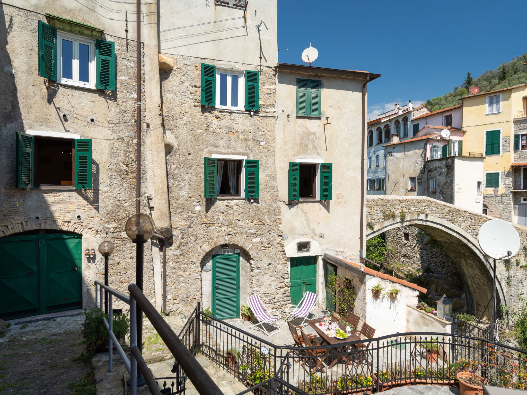 Historisches Zweifamilienhaus. Im Ort Dolcedo, 9 km vom Zentrum von Imperia, 23 km vom Zentrum von Alassio, zentrale, sonnige Lage, exzellente Lage: Absolut zentral und dennoch ruhig, 9 km vom Meer, in einer Fussgängerzone. Öffentliche Parkplätze 20 m auf der Strasse. Einkaufsgeschäft 50 m, Supermarkt 7 km, Restaurant 50 m, Bar 10 m, Bäckerei 200 m, Café 50 m, Bushaltestelle 50 m, Bahnstation "Imperia" 12 km, Kieselstrand 9 km, Badesee 5 km.