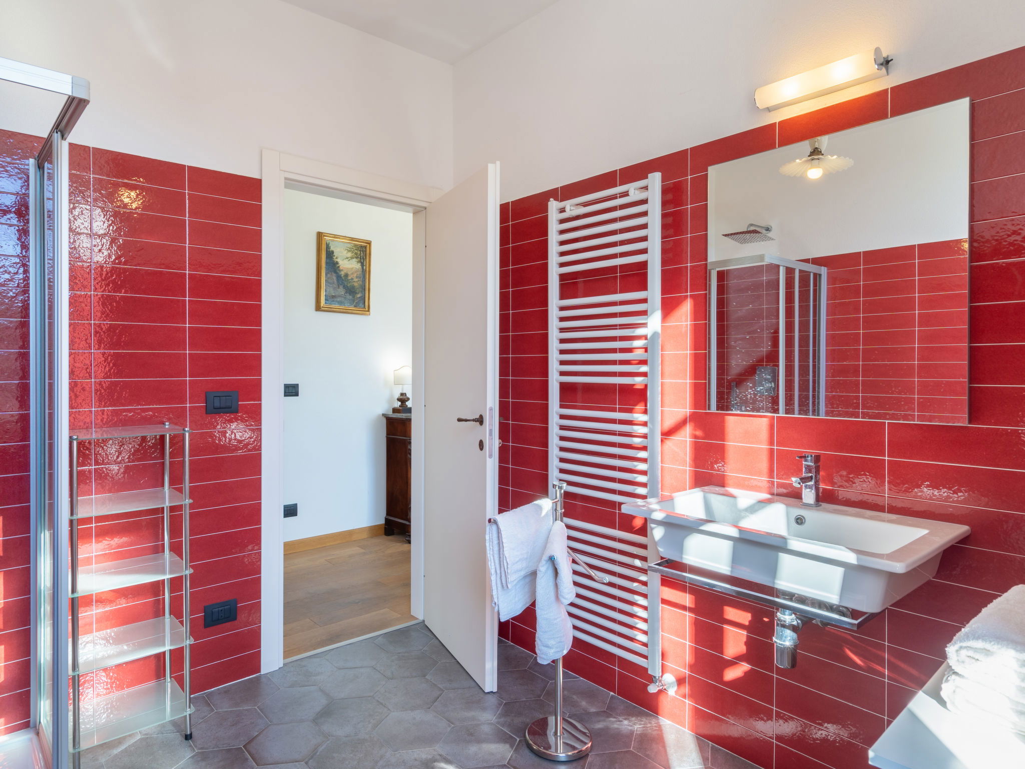 "Vincenzina & Giovanni ", 7-Zimmer-Wohnung 195 m2 auf 2 Stockwerken, im Erdgeschoss. Geschmackvoll und gemütlich eingerichtet: Wohnzimmer mit Sat-TV. 2 Zimmer, jedes Zimmer mit 1 franz. Bett (160 cm), Esstisch, Sat-TV und Internationale TV-Sender. Offene Küche (Backofen, Geschirrspüler, 4 Flammen, Toaster, Wasserkocher, Tiefkühler, elektrische Kaffeemaschine) mit Esstisch. Ausgang zur Terrasse. Dusche/Bidet/WC. 2. Obergeschoss: Wohn-/Esszimmer mit Esstisch und Sat-TV. 3 Zimmer, jedes Zimmer mit 1 Doppelbett (160 cm), Dusche/Bidet/WC. Küche (Backofen, Geschirrspüler, 4 Flammen, Toaster, Wasserkocher, Tiefkühler, elektrische Kaffeemaschine) mit kleinem Esstisch. Ausgang zur Terrasse. G-Heizung. Balkon, Terrasse. Terrassenmöbel, Balkonmöbel, Liegestühle (2), Abstellkammer. Schöne Sicht auf die Landschaft und die Ortschaft. Zur Verfügung: Waschmaschine, Kinderhochstuhl, Babybett. Internet (WLAN, gratis). Parkplatz (3 Autos) in 50 m. Bitte beachten: Maximal 2 Haustiere/Hunde erlaubt. Rauchmelder, Feuerlöscher, kein Fahrstuhl. Keine interne Verbindung zwischen den separaten Wohneinheiten. Keine interne Verbindung zwischen den Etagen. IT008030C2ZPIRZSU7,IT008030C2H6HFSK2B