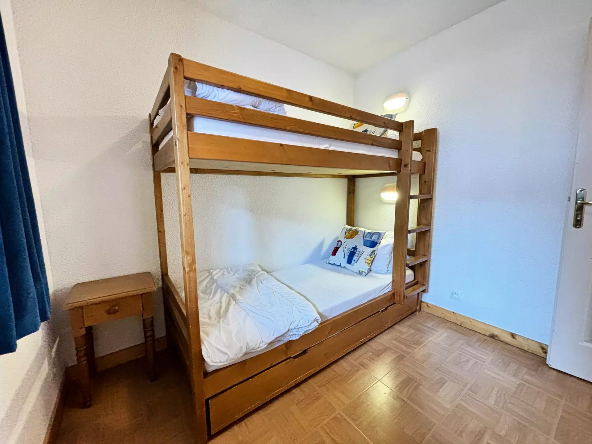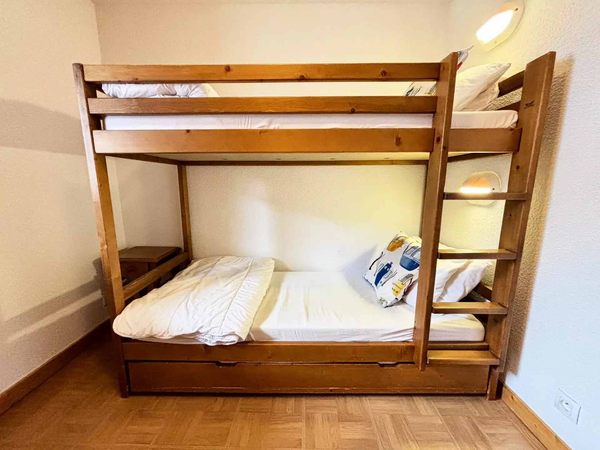 Das erste Schlafzimmer besteht aus einem Etagenbett (2 x 90 cm) und einem Ausziehbett (1 x 90 cm).