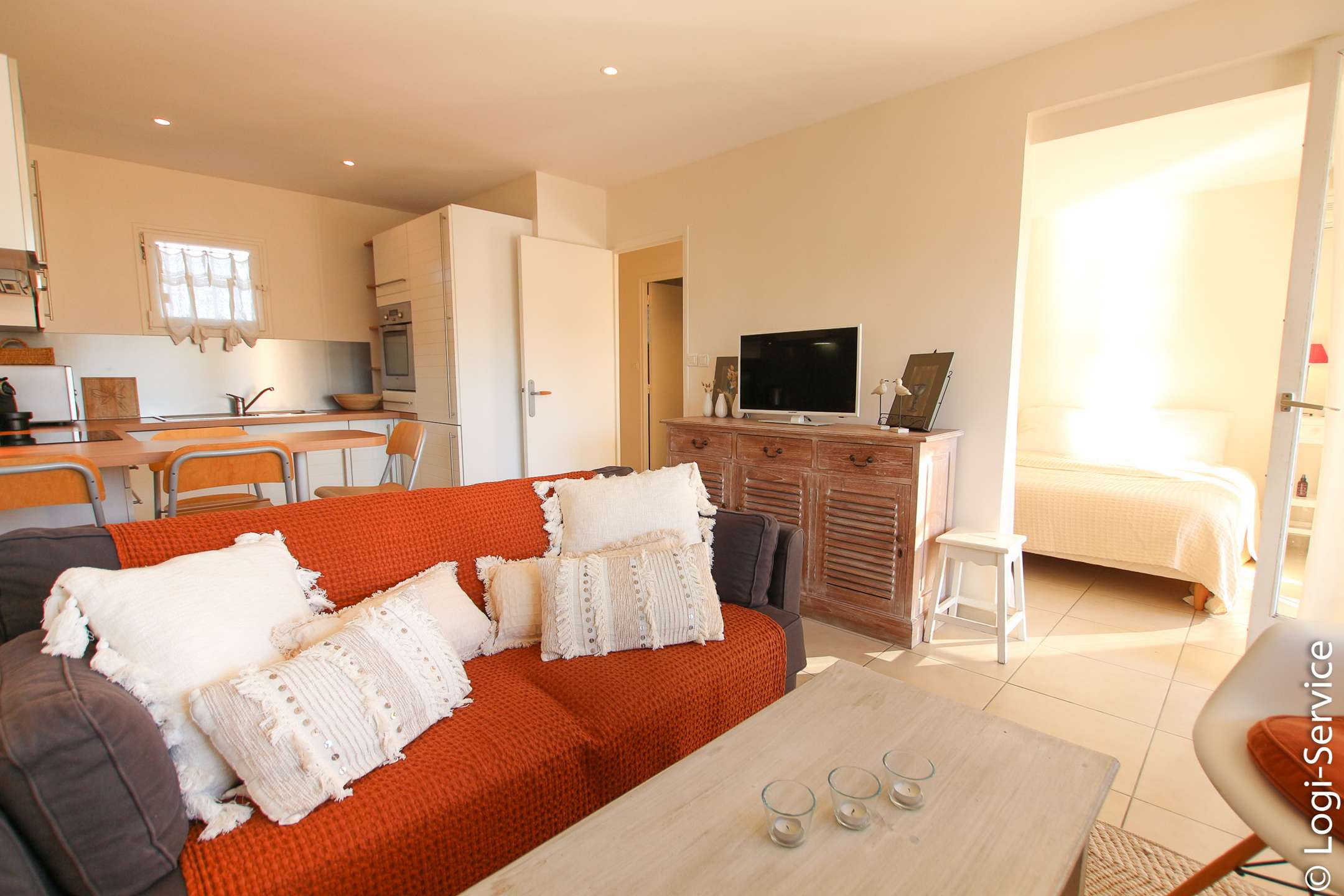 In einer sicheren Wohngegend von Port Grimaud II, weniger als 5 Gehminuten vom kleinen Strand von Port Grimaud Sud entfernt, hübsches, klimatisiertes Apartment für 2 Personen. Es besteht aus einem Eingang, der zu einem Wohnzimmer mit offener und voll ausgestatteter Küche führt, einem Schlafzimmer mit Klimaanlage und einem Duschbad mit WC. Über das Schlafzimmer bzw. Wohnzimmer gelangen Sie auf die nach Süden ausgerichtete Loggia.