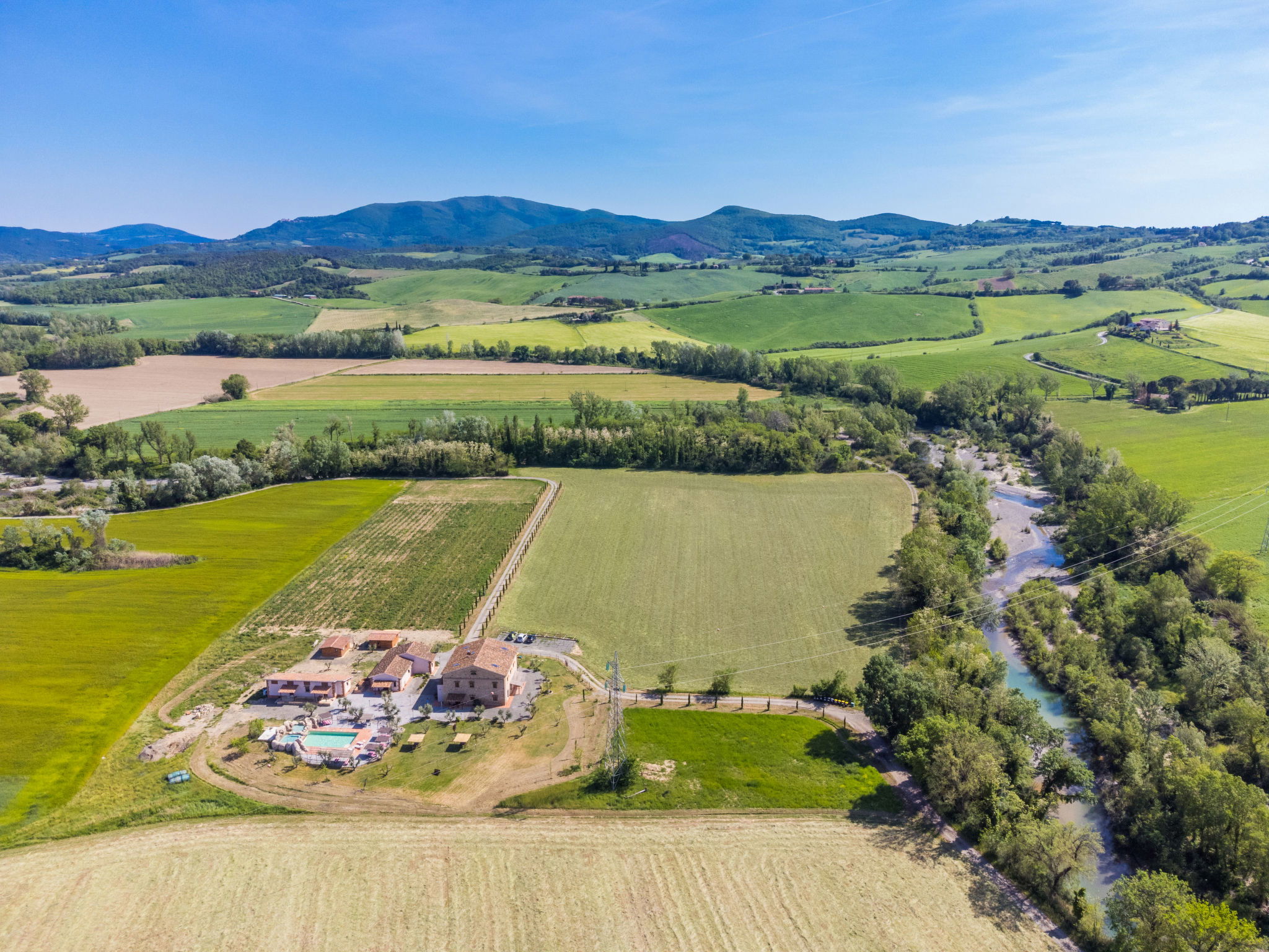 Diese schöne, liebevoll restaurierte Anlage liegt mitten in den Feldern des Val di Cecina, nur ein paar Schritte vom gleichnamigen Flusslauf entfernt. Besonders viel Aufmerksamkeit wurde beim Bau des Pools gelegt, wo ein Sprudelbad (ca. 11 Personen) und ein Kinderbecken in Stein gemeisselt, entstanden sind. Ferienanlage "Podere la Querciola", auf 2 Stockwerken, renoviert im Jahre 2021, umgeben von Wiesen und Feldern. Im Ortsteil Casino di Terra, 11 km vom Zentrum von Guardistallo, 14 km vom Zentrum von Cecina, alleinstehende, ruhige Lage, 16 km vom Meer. Zur Mitbenutzung: Grundstück mit Pflanzen und Bäumen, Schwimmbad (6 x 11 m, 150 cm tief, saisonale Verfügbarkeit: 01.Mai. - 15.Okt.). Kinderbecken, Aussendusche, Sprudelbad, Gartenmöbel, Grill. In der Anlage: Wireless LAN, Waschmaschine (extra). Zufahrt (700 m Naturweg). Parkplatz. Einkaufsgeschäft 11 km, Restaurant 2 km, Bar 2 km, Bushaltestelle 1.1 km, Sandstrand "Marina di Cecina" 16 km. Nahe gelegene Sehenswürdigkeiten: Volterra 24 km, Pisa 70 km, Firenze 100 m.