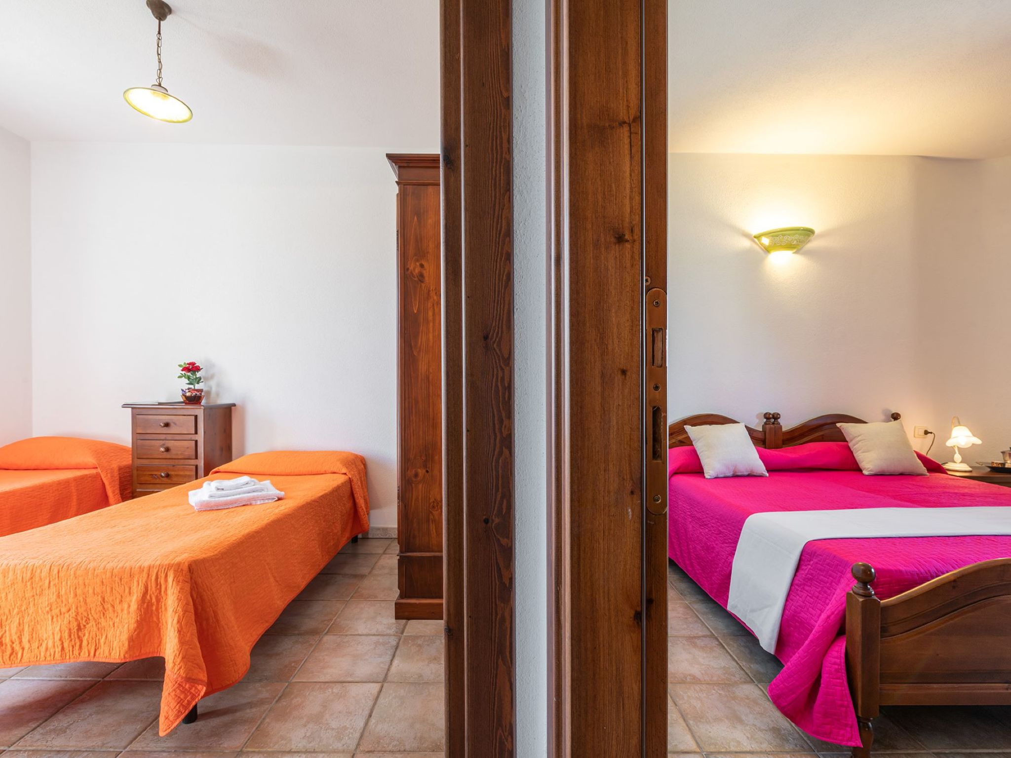 "Pompia 2", 3-Zimmer-Wohnung 60 m2, im erhöhten Erdgeschoss. Zweckmässig eingerichtet: Wohn-/Schlafzimmer mit 1 Diwanbett, Esstisch und TV. Ausgang zur Terrasse. 1 Zimmer mit 2 Betten. 1 Zimmer mit 1 Doppelbett. Kochnische (Backofen, 4 Flammen, Tiefkühler). Dusche/Bidet/WC. Terrasse überdacht. Terrassenmöbel. Schöne Sicht auf den Garten und die Landschaft. Zur Verfügung: Waschmaschine, Kinderhochstuhl, Babybett bis 2 Jahre (extra). Internet (WLAN, gratis). Parkplatz beim Haus. Bitte beachten: Nichtraucher-Haus. 1 Haustier/Hund erlaubt. Eigener Eingang. IT091085C2000Q5460