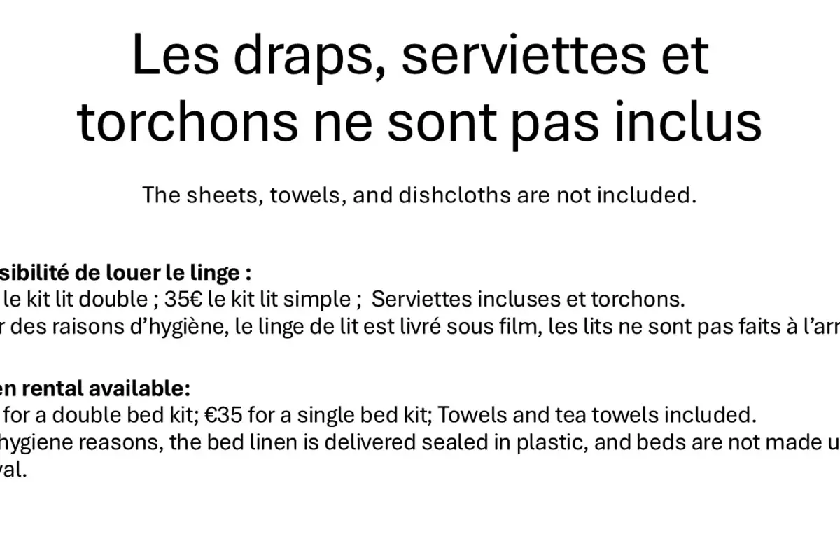 Bettwäsche und Handtücher werden gegen Aufpreis zur Verfügung gestellt.