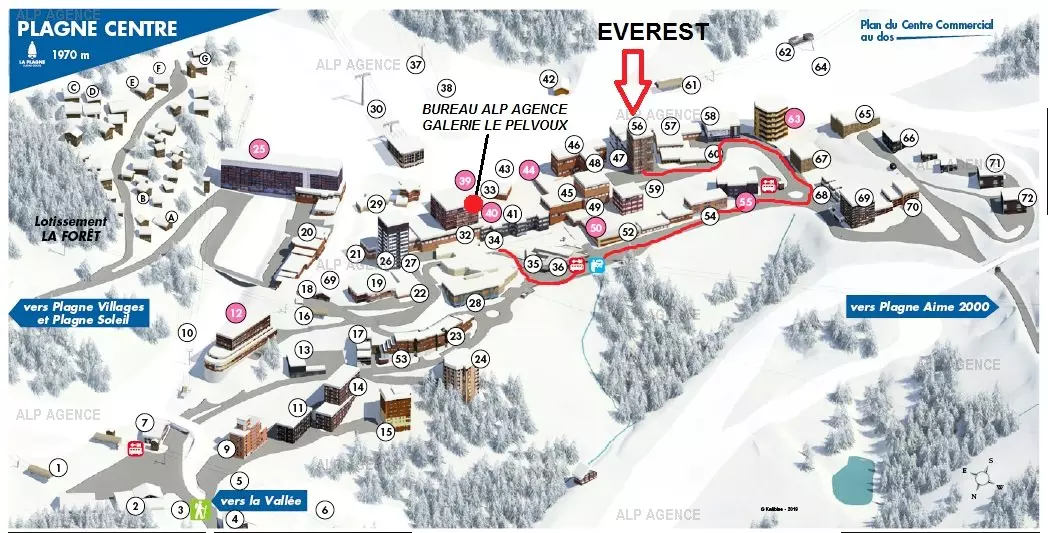 L'EVEREST: 14-stöckige Residenz im Herzen des Resorts und am Fuße der Pisten. Direkter Zugang zur Einkaufsgalerie über eine Treppe.