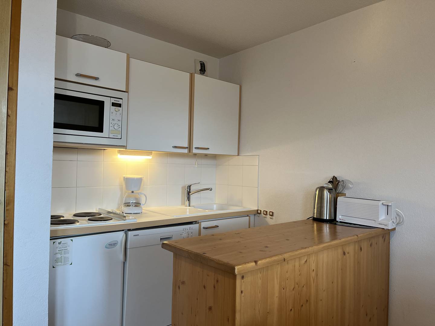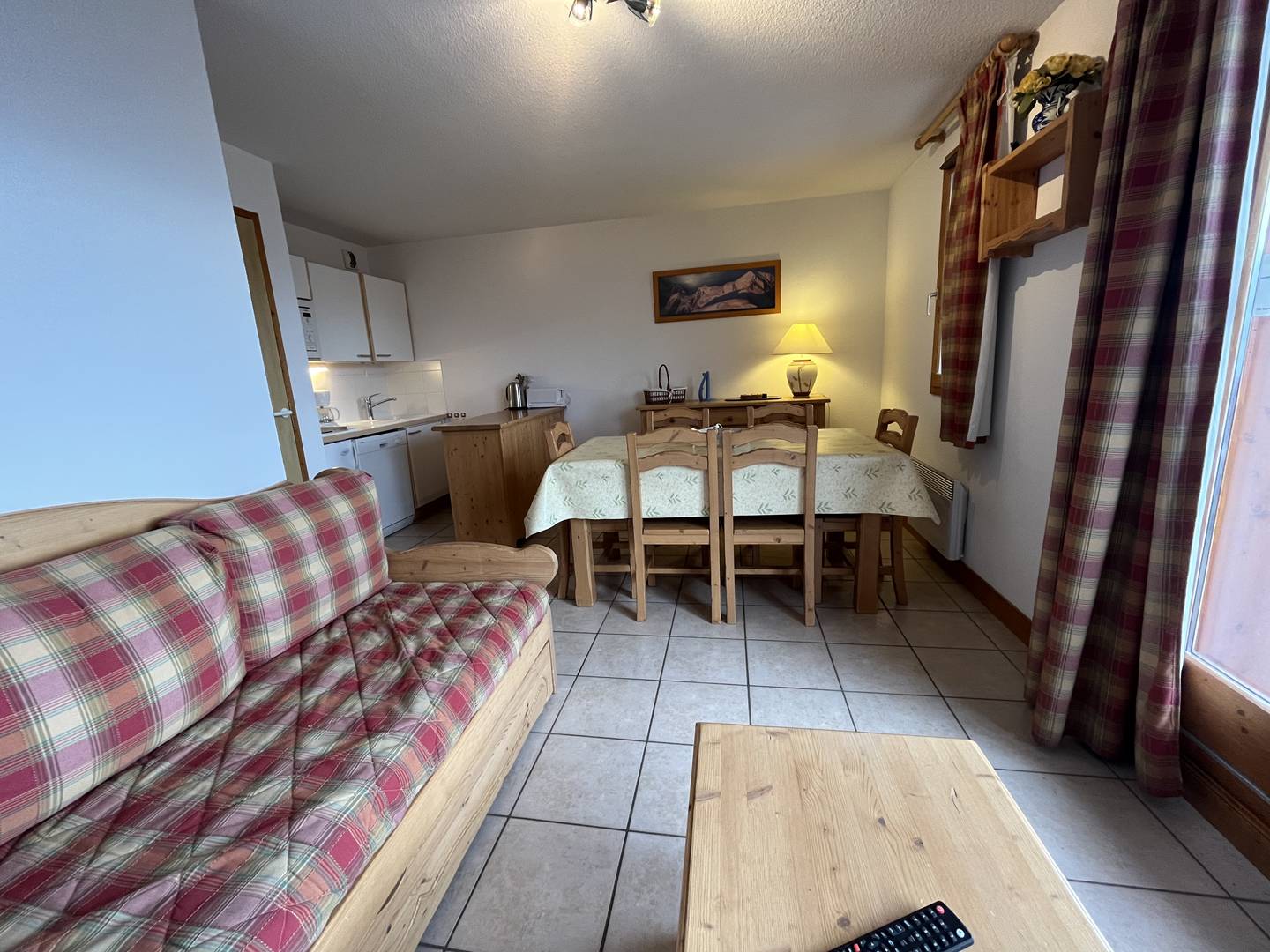 3-Zimmer-Wohnung für 6 Personen, 44 m², im 2. Stock mit Balkon, ohne Aufzug, nach Westen ausgerichtet und profitiert von der Nähe des Resortzentrums und der Pisten