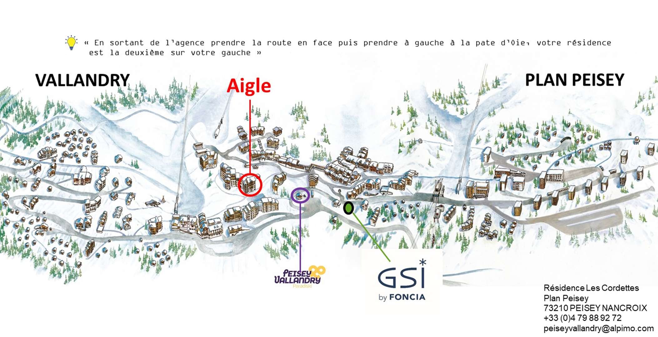 Die Residenz liegt auf den Höhen von Vallandry, direkter Zugang zu den Pisten über den Weg, der vor der Residenz Crêt de l'ours vorbeiführt.