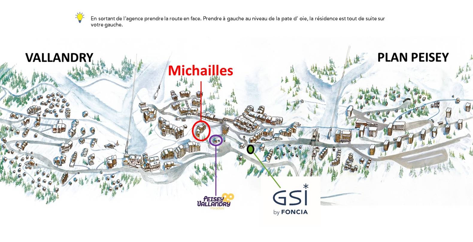 Die Residenz befindet sich in Vallandry, direkter Zugang zu den Pisten über den Weg, der an der Residenz Praz de l'ours (unterer Weg) oder Crêt de l'ours (oberer Weg) vorbeiführt.