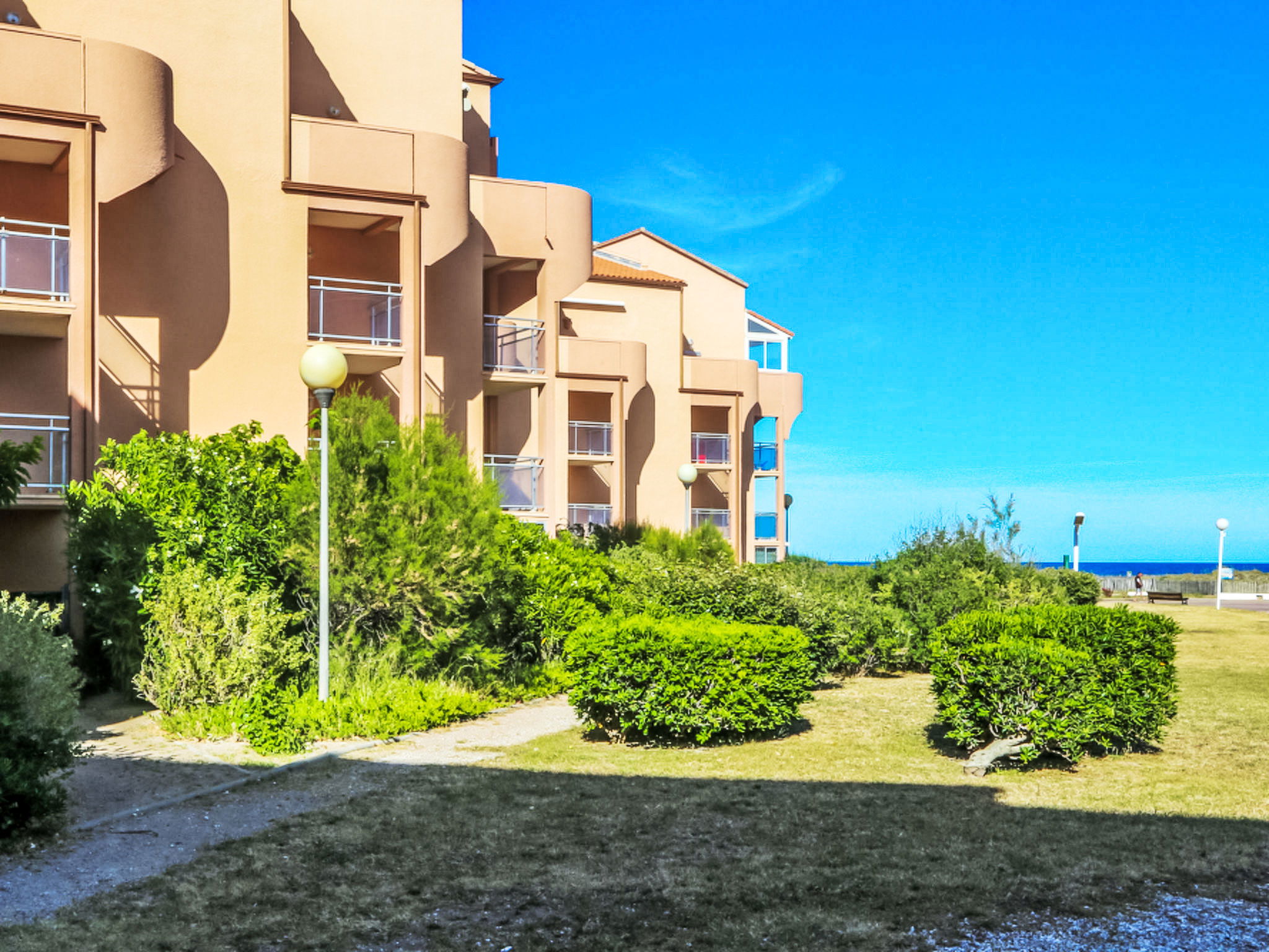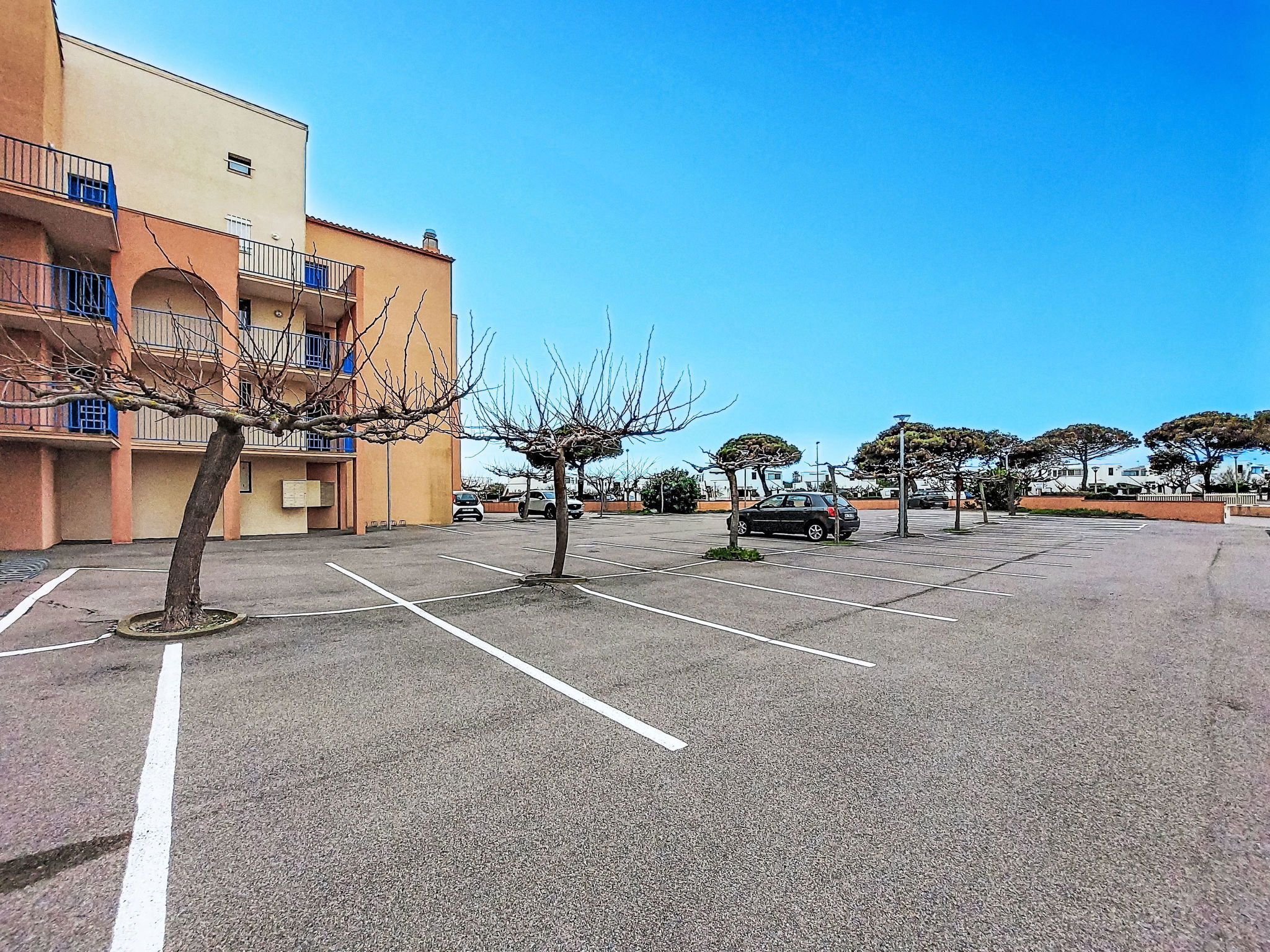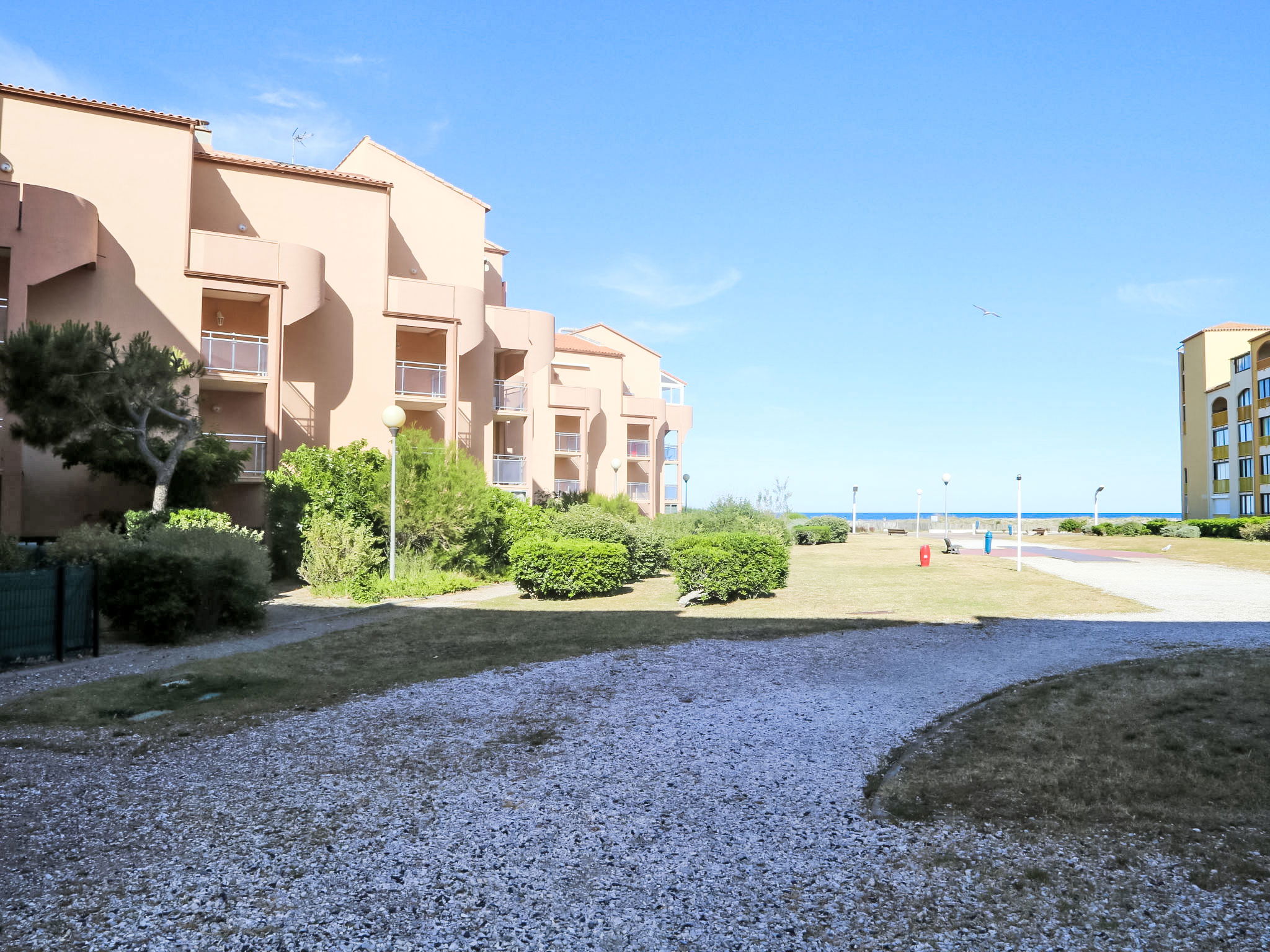 Residenz "Cap de Mer", auf 3 Stockwerken. Im Ortsteil la Grande Plage, 100 m vom Meer, 100 m vom Strand. Einkaufsgeschäft, Lebensmittelgeschäft 200 m, Supermarkt 5 km, Einkaufszentrum, Restaurant, Bar, Bäckerei, Café 200 m, Bushaltestelle "Les Marines" 220 m, Bahnstation "Perpignan" 32 km, Sandstrand 100 m, Tauchzentrum 5 km. Sporthafen 7 km, Surfschule 2 km, Tennis 4 km, Minigolf 4 km, Reitstall 8 km. Nahe gelegene Sehenswürdigkeiten: Aqualand Port Leucate 2 km, Réserve Africaine de Sigean 41 km, site des dosses 4 km, téléski nautique 5 km, Perpignan 25 km, Barcelone 215 km. Bekannte Seen in der Umgebung sind gut erreichbar: Etang de Leucate ou salses 8 km, Lac de Villeneuve de la Raho 28 km. Wandergebiete: Sentier du guetteur 8 km, la forteresse de salses 15 km, Sentier du littoral Collioure 40 km. Bitte beachten: kein Fahrstuhl vorhanden.