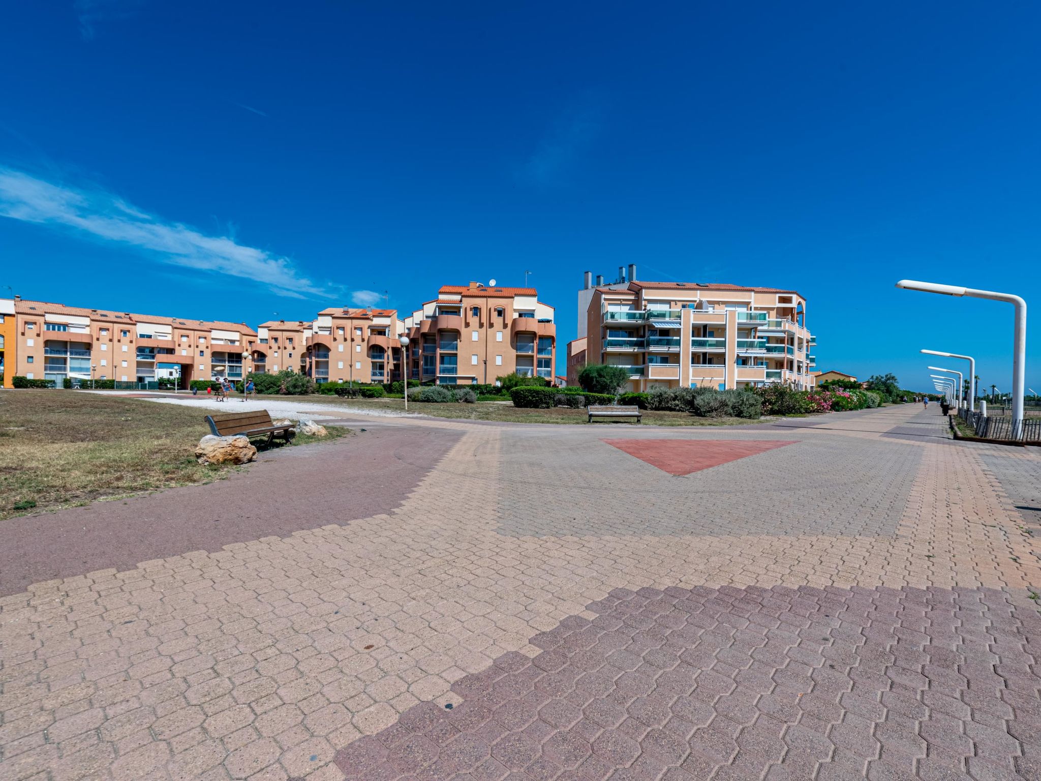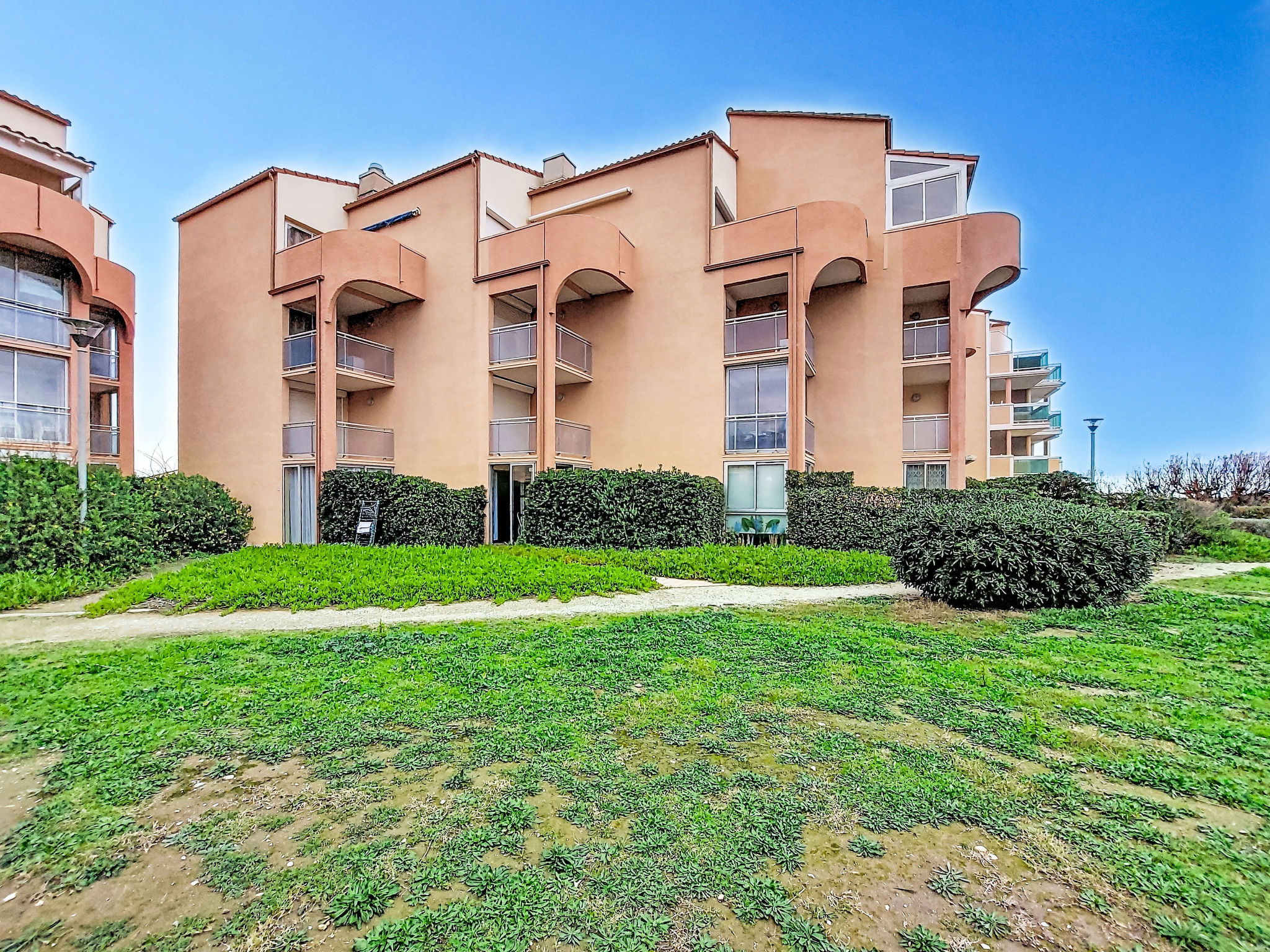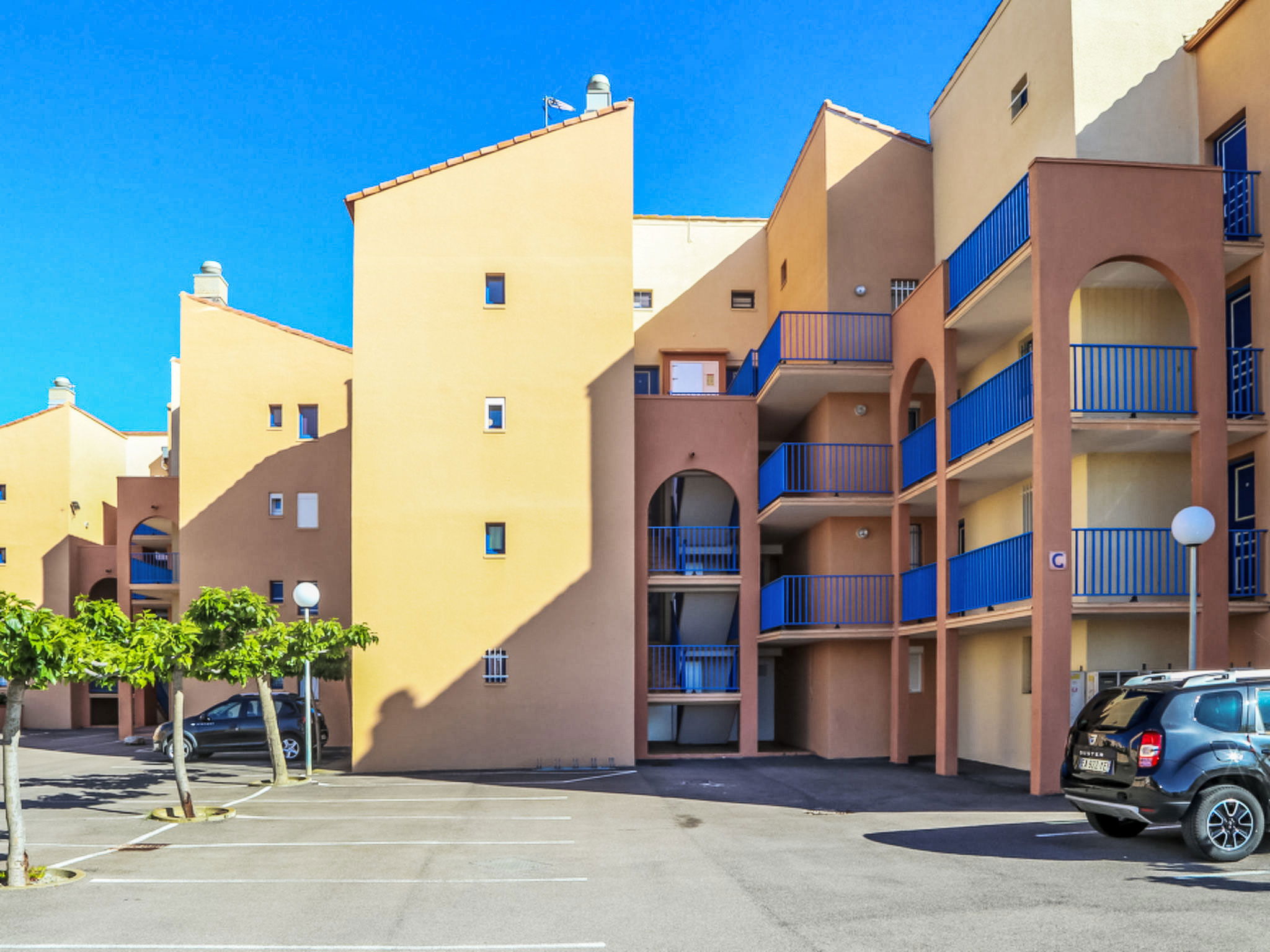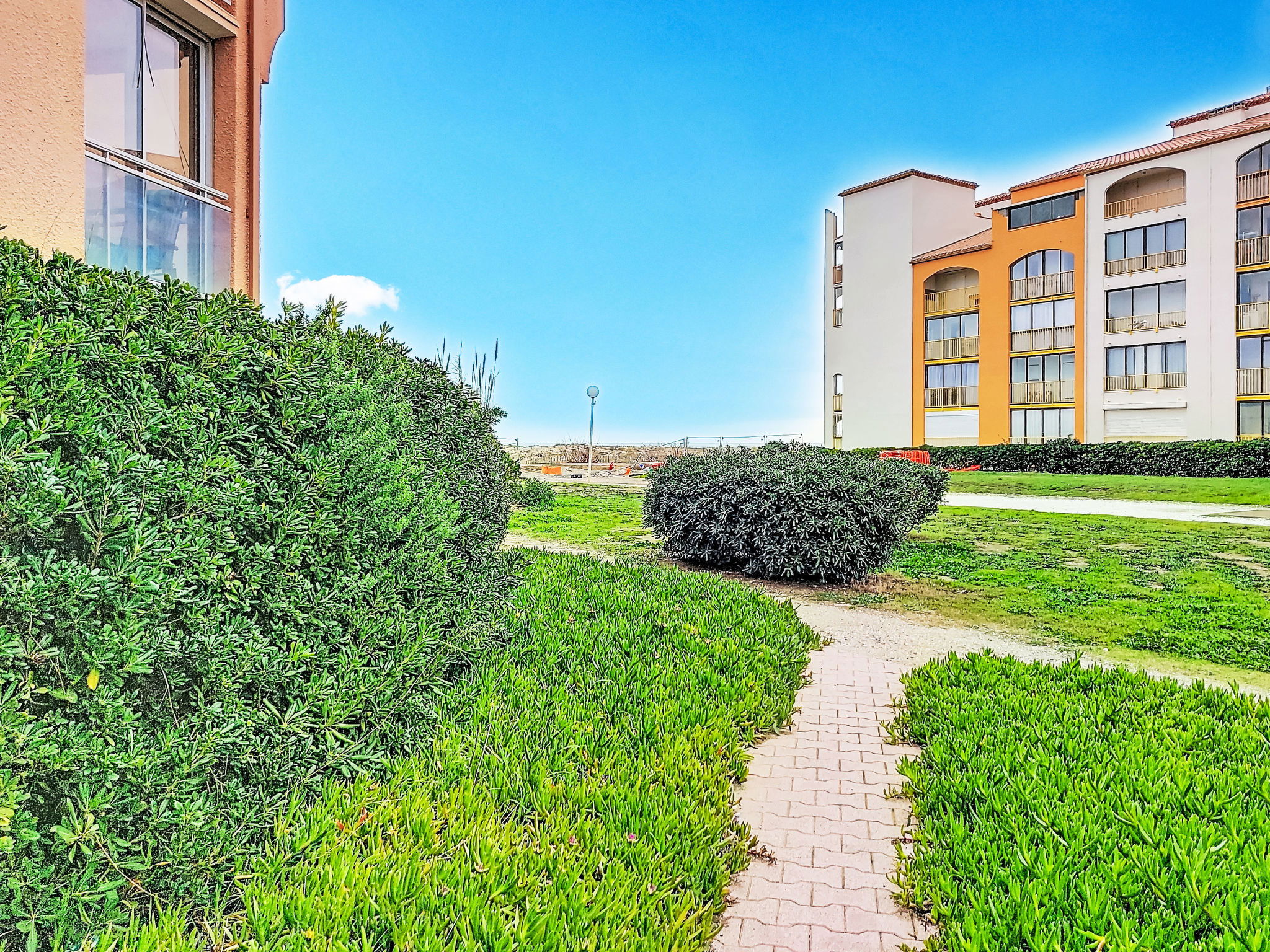 Residenz "Cap de Mer", auf 3 Stockwerken. Im Ortsteil la Grande Plage, 100 m vom Meer, 100 m vom Strand. Einkaufsgeschäft, Lebensmittelgeschäft 200 m, Supermarkt 5 km, Einkaufszentrum, Restaurant, Bar, Bäckerei, Café 200 m, Bushaltestelle "Les Marines" 220 m, Bahnstation "Perpignan" 32 km, Sandstrand 100 m, Tauchzentrum 5 km. Sporthafen 7 km, Surfschule 2 km, Tennis 4 km, Minigolf 4 km, Reitstall 8 km. Nahe gelegene Sehenswürdigkeiten: Aqualand Port Leucate 2 km, Réserve Africaine de Sigean 41 km, site des dosses 4 km, téléski nautique 5 km, Perpignan 25 km, Barcelone 215 km. Bekannte Seen in der Umgebung sind gut erreichbar: Etang de Leucate ou salses 8 km, Lac de Villeneuve de la Raho 28 km. Wandergebiete: Sentier du guetteur 8 km, la forteresse de salses 15 km, Sentier du littoral Collioure 40 km. Bitte beachten: kein Fahrstuhl vorhanden.