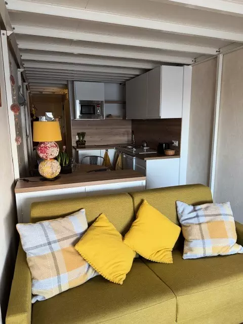Ihre Ferienunterkunft umfasst: 1 Wohnzimmer, 1 Zwischengeschoss, 1 Küche, 1 Badezimmer, Balkon und Parkplatz.