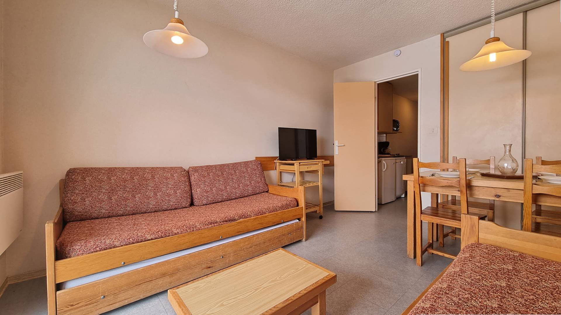 Diese nach Südwesten ausgerichtete 2-Zimmer-Wohnung im zehnten Stock der Residenz „Les Issarts“ (mit Aufzug) liegt nur 100 m vom Sessellift „Le Jas“ entfernt.