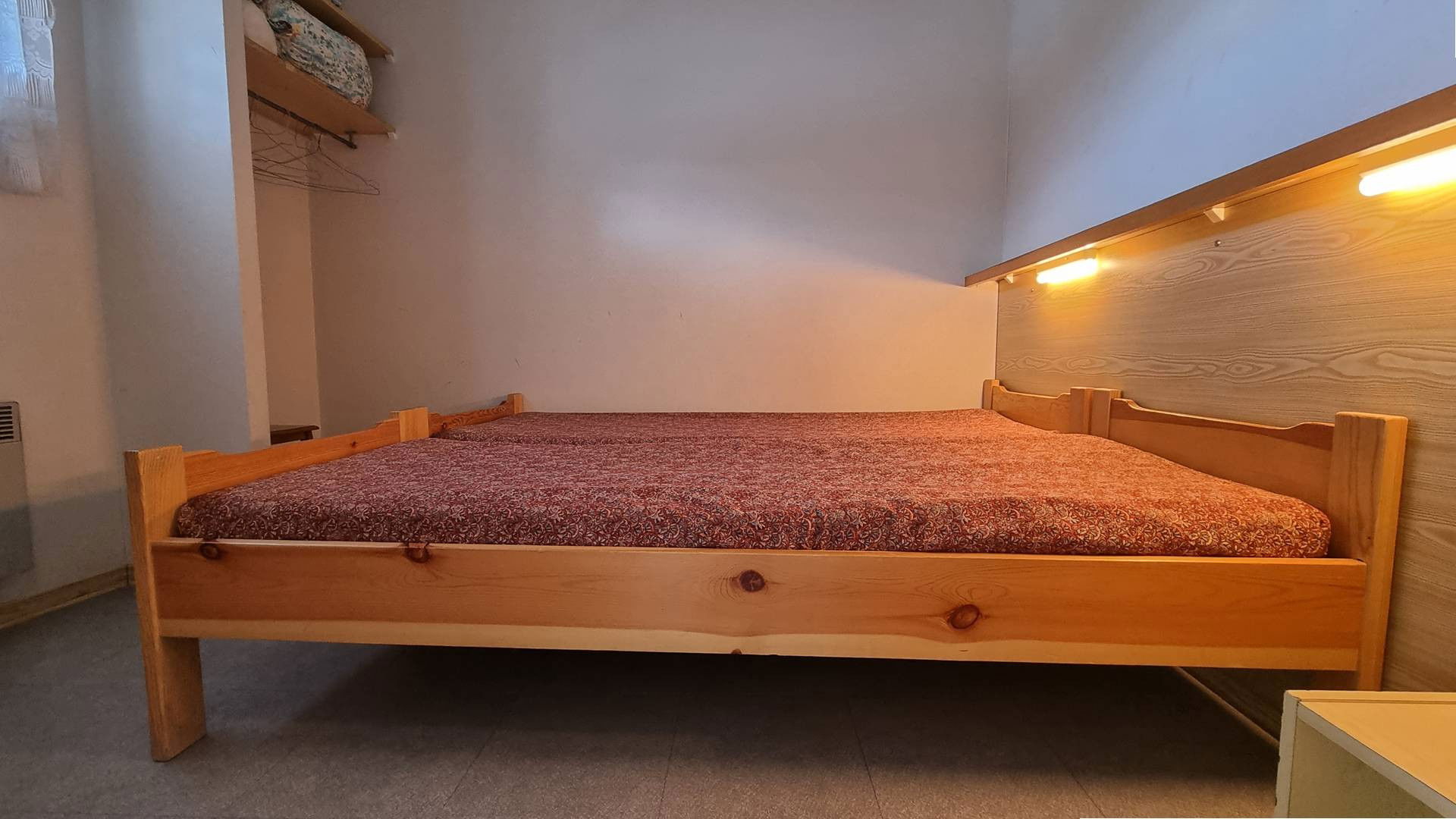 Ein Wohnzimmer mit einem Ausziehbett (2 Einzelbetten), einem separaten Schlafsofa und einem Fernseher. Ein Badezimmer mit WC.