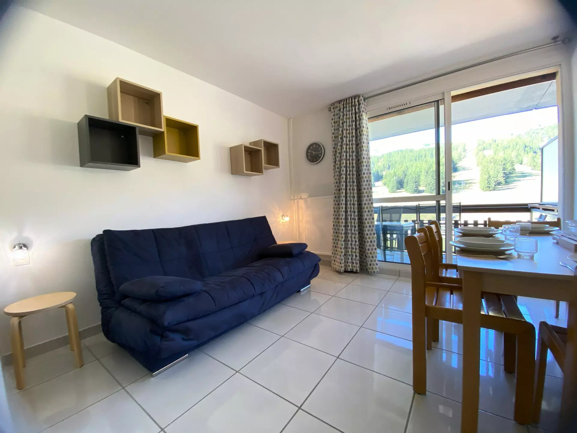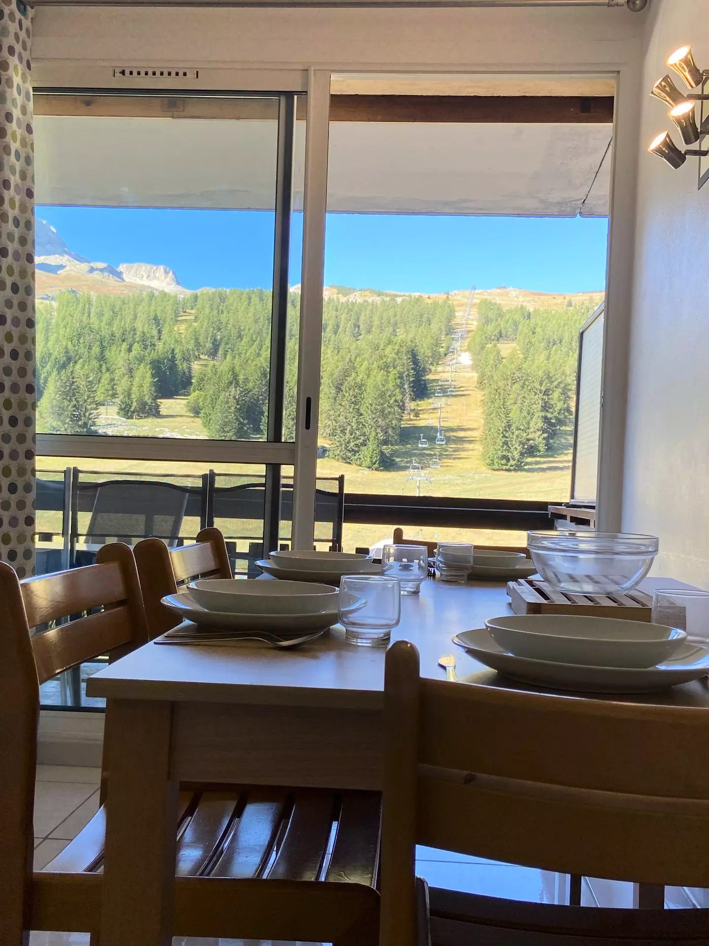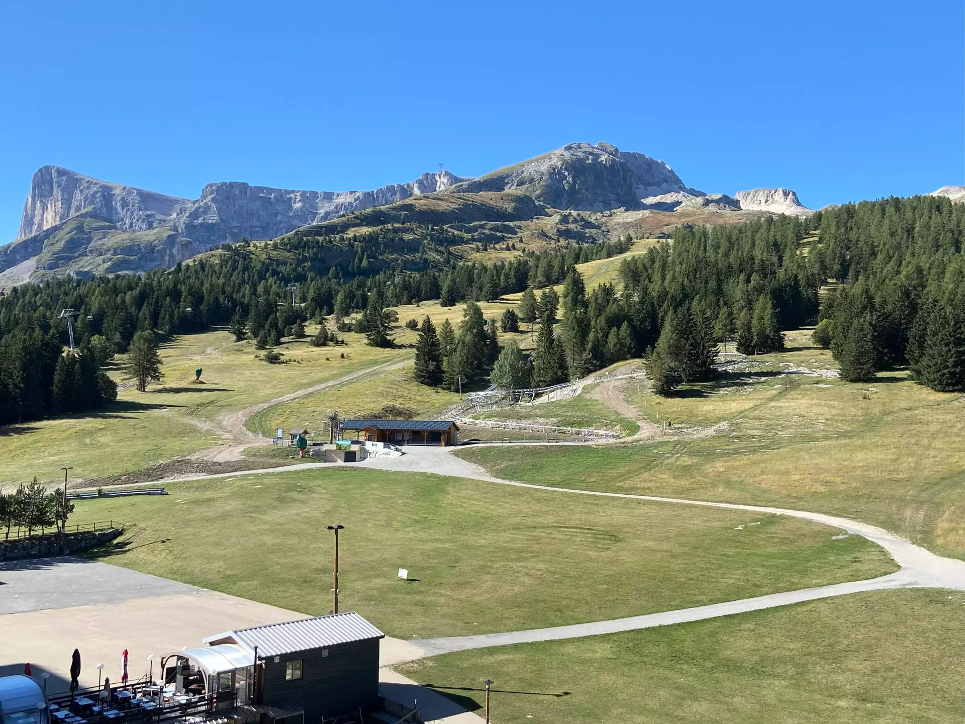 Balkon mit herrlicher Aussicht auf das Skigebiet und den Pic de Bure. Südlage. Studio am Fuße der Pisten.