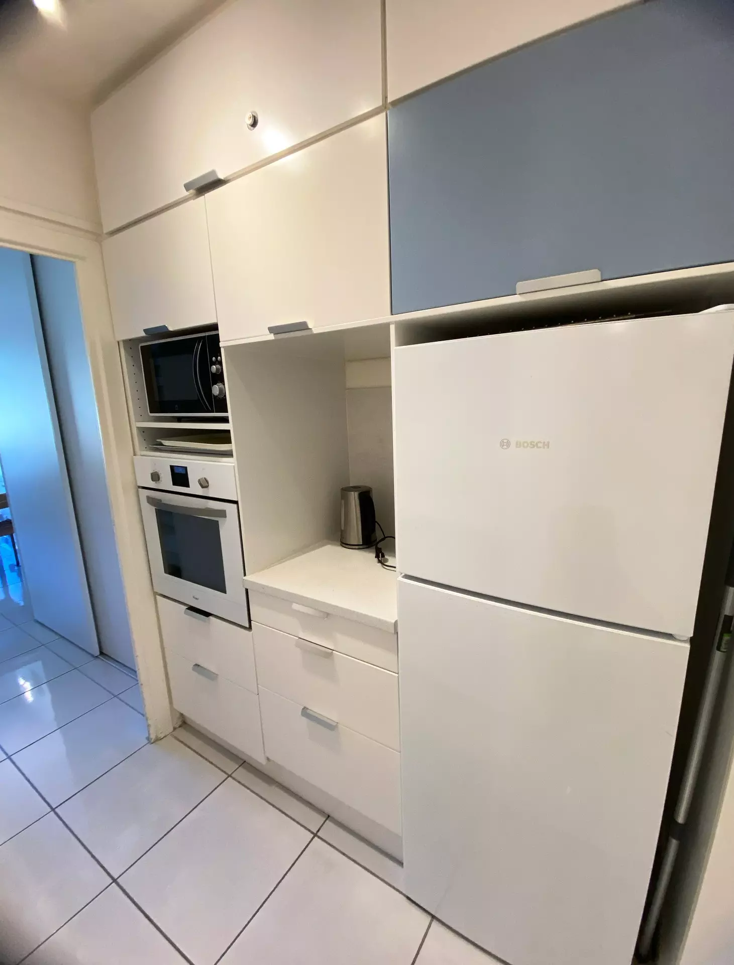 Voll ausgestattete Küchenzeile. Backofen, Mikrowelle, Filterkaffeemaschine, Toaster, Wasserkocher, Raclette-Grill, Kühlschrank und Geschirrspüler.