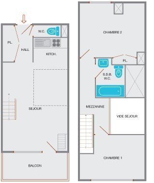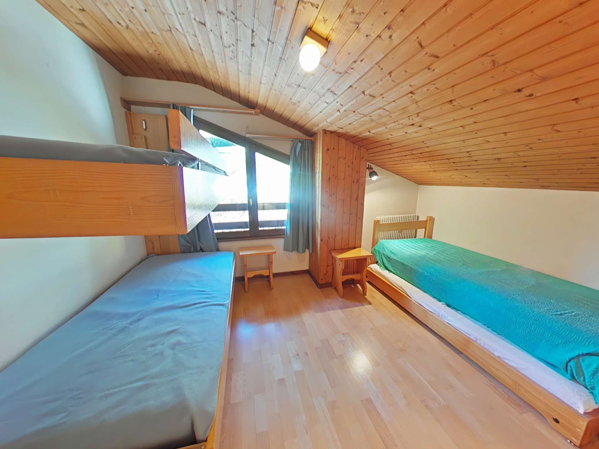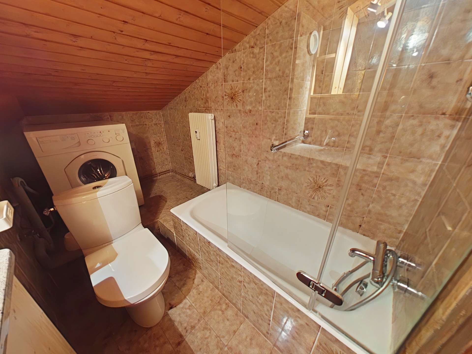 Diese Ferienwohnung im 1. Stock verfügt über ein gemütliches Wohnzimmer mit dekorativem Kamin und Fernseher sowie einen ausgestatteten Küchenbereich mit Geschirrspüler. Im Obergeschoss ein Schlafzimmer mit 1 Doppelbett, ein Schlafzimmer mit 2 ausziehbaren Einzelbetten und 2 Klappeinzelbetten, ein Badezimmer mit Waschmaschine und WC sowie ein separates WC.