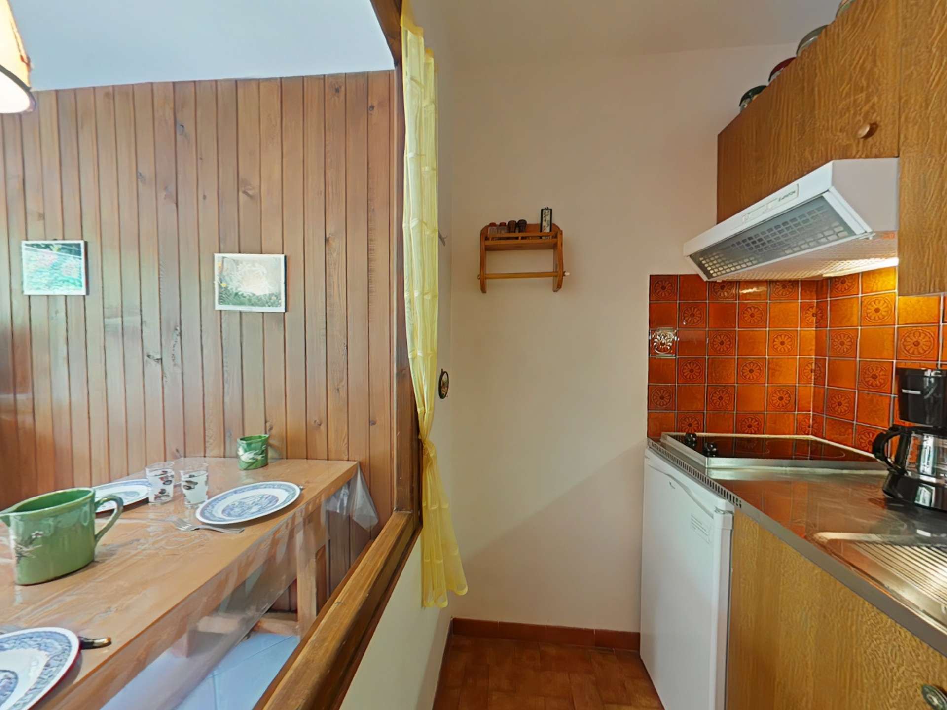 Diese Ferienwohnung im Erdgeschoss verfügt über ein Wohnzimmer mit einem Schlafsofa für 2 Personen und Fernseher, einen Südbalkon mit Blick auf die Colombière und teilweise auf die Pisten, einen ausgestatteten Küchenbereich und eine Nische mit 2 Etagenbetten Betten, ein Badezimmer mit WC. Kein WIFI-Netzwerk