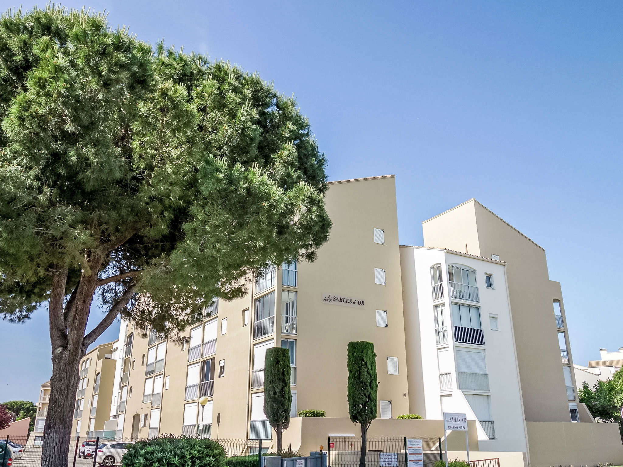 Residenz "Les Sables d'Or", auf 4 Stockwerken. Im Ortsteil le Palais de la Mer, 650 m vom Meer, 600 m vom Strand. Parkplatz. Einkaufsgeschäft 2 km, Lebensmittelgeschäft 150 m, Supermarkt 2 km, Einkaufszentrum, Restaurant 150 m, Zentrum zu Fuss in 20 Minuten erreichbar, Bushaltestelle "HLM" 550 m, Bahnstation 1.6 km, Sandstrand "Plage nord" 600 m, Freibad 1 km, Thermalbad "Thalazur Port Camargue" 3 km. Sporthafen 1.5 km, Segelschule 1.5 km, Minigolf 500 m, Kinderspielplatz 500 m. Nahe gelegene Sehenswürdigkeiten: Seacquarium 500 m, Casino Flamingo, Arènes Grau du Roi 1 km, Aigues Mortes 6 km, La Grande Motte 12 km, Nîmes 52 km. Wandergebiete: Réserve Naturelle de Camargue. Bitte beachten: kein Fahrstuhl vorhanden. Die Schlüsselübergabe findet bei der Agentur in Port Camargue statt. Nacht Club/Disco 500 m vom Haus. Flugplatz 24 km vom Haus. Weitere Unterkünfte sind buchbar. Luna-Park (01.07. - 31.08.) 600 m.