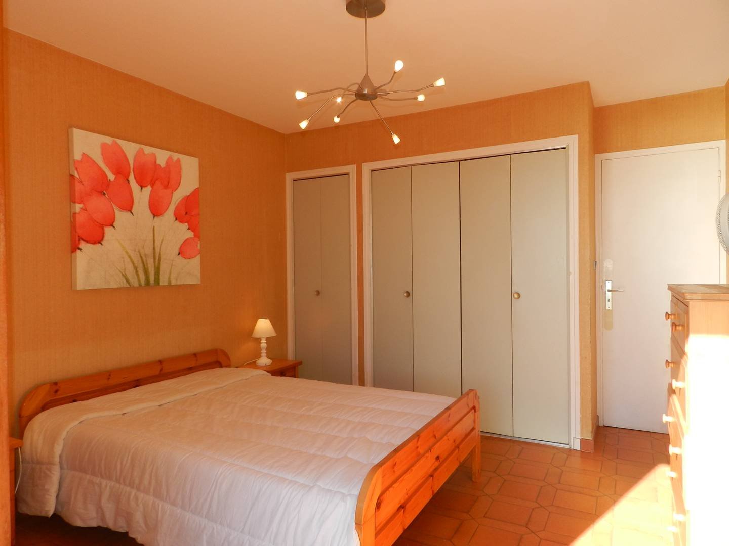 Das Apartment mit Terrasse und herrlichem Meerblick in SÜD-OSTEN-Ausrichtung besteht aus einem Wohnzimmer mit Sofa, einem Schlafzimmer mit 1 Bett 140 und Zugang zu einer Terrasse mit Meerblick, einem Kabinenbereich mit 2 Etagenbetten, einer renovierten, ausgestatteten Küche, die zum Wohnzimmer hin offen ist, einem Badezimmer und einer separaten Toilette. Terrasse mit Markisen,