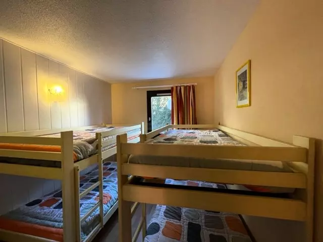 Ein Zimmer mit zwei 90 cm langen Etagenbetten