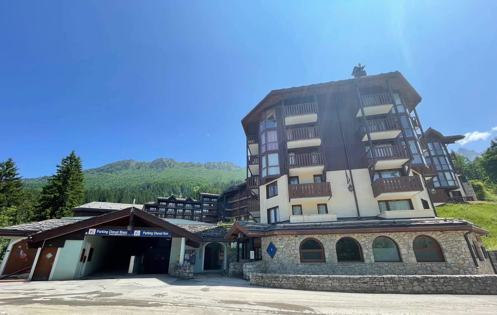 Der Komplex „Cheval Blanc“ besteht aus mehreren Gebäuden. Der Zugang zu den Skipisten kann entweder für gute Skifahrer direkt über den Skilift Côte Soleil oder für Kinder und Anfänger über die Gondelbahn Pierrafort erfolgen. Kostenpflichtige Parkplätze in der Tiefgarage. Residenz mit Aufzug.