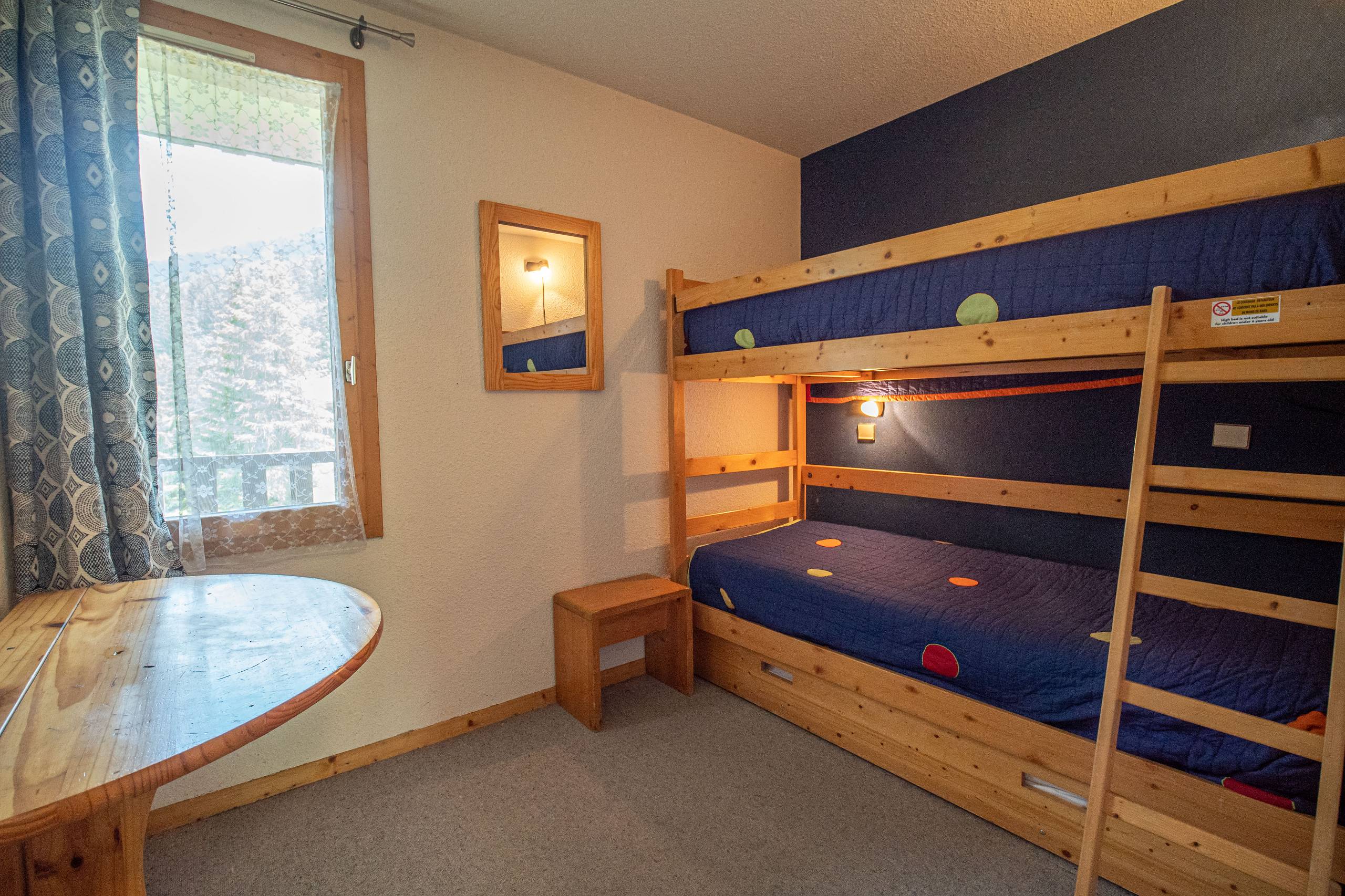 - Schlafzimmer mit einem Etagenbett und einem Ausziehbett.