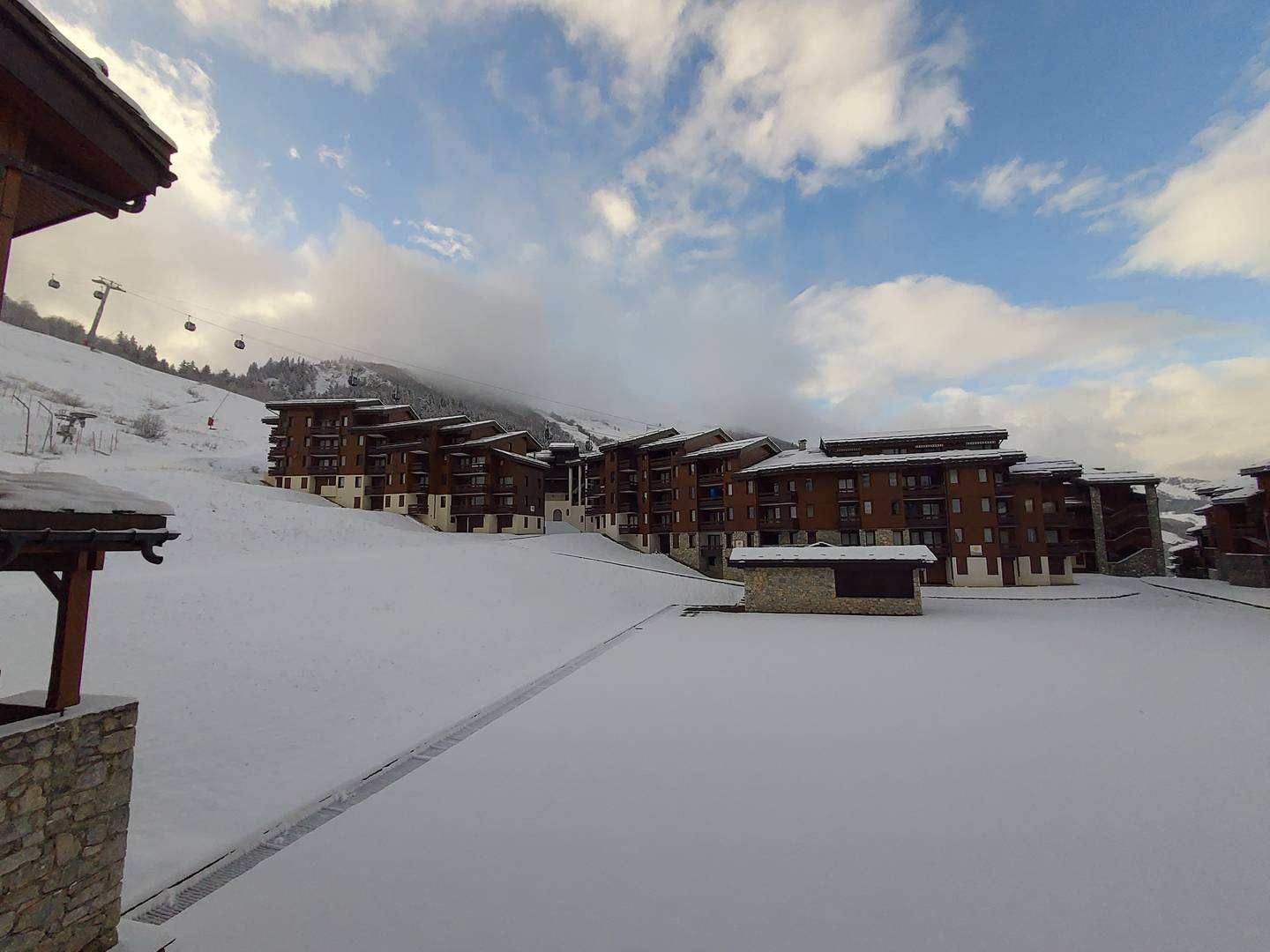 - Nach Westen ausgerichteter Balkon mit Blick auf die Pisten von Valmorel und den Place du Mottet.