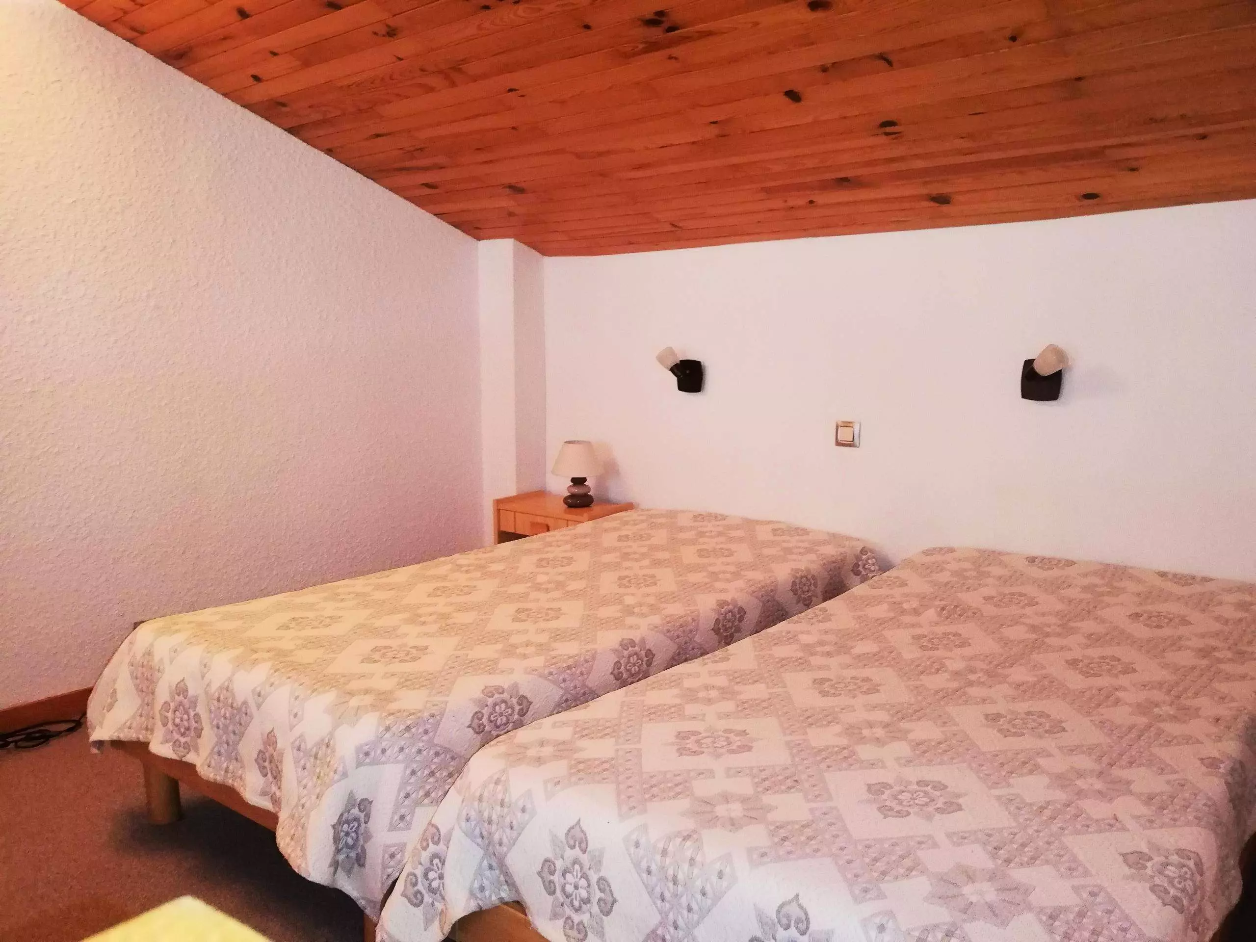- Schlafzimmer mit 2 Einzelbetten, ein großes Wohnzimmer mit einem 140 cm breiten Doppelschlafsofa, erweitert durch einen Balkon mit Blick auf die Pisten (Süd).