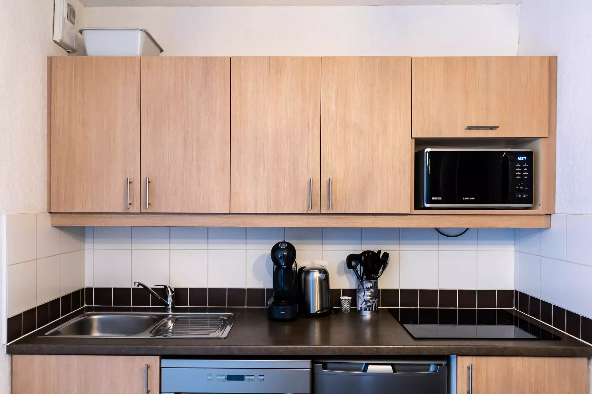 Sie finden das Apartment für Ihren Komfort komplett ausgestattet mit: einer vollständigen Palette an Küchenutensilien, Wasserkocher, Mikrowelle, Toaster, Dolce Gusto-Kaffeemaschine, Haartrockner, Geschirrspüler sowie einem zusätzlichen Smart-TV im Schlafzimmer für gemütliche Abende oder Frühstück im Bett.