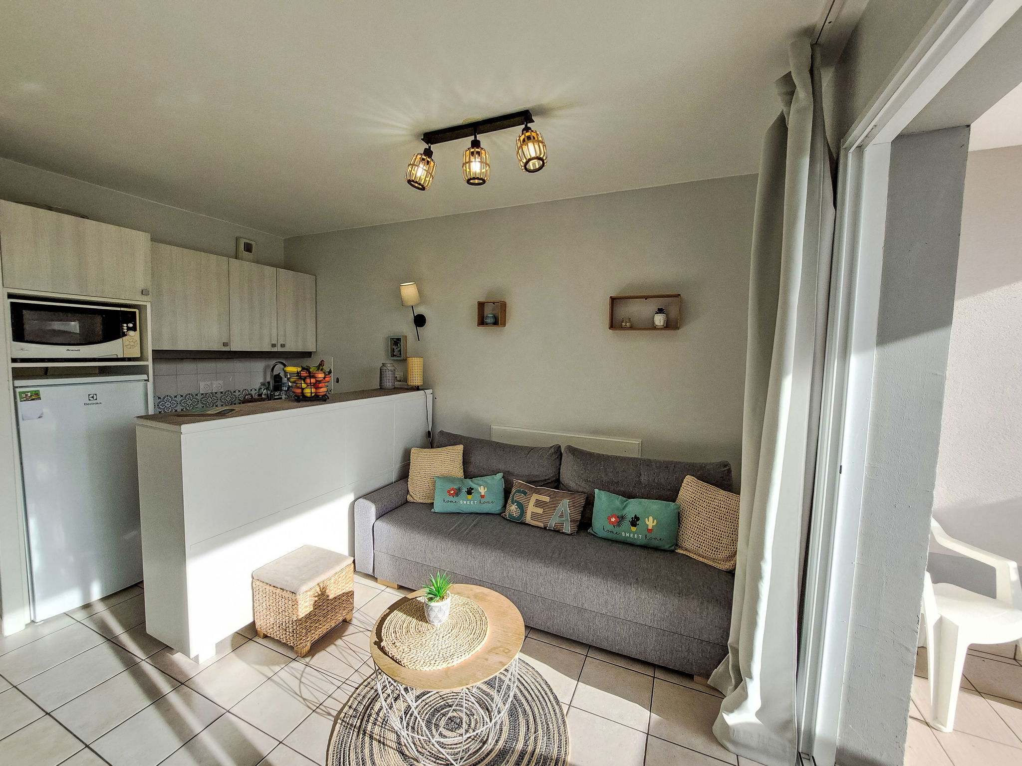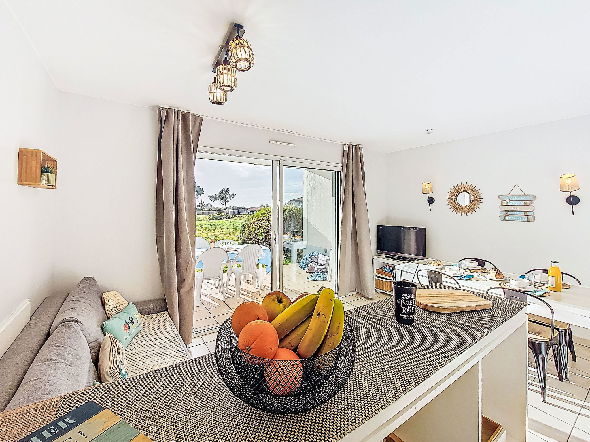 "Ocean for ever", 3-Zimmer-Wohnung 38 m2. Schön eingerichtet: Eingang. Wohn-/Esszimmer mit 1 Doppeldiwanbett (2 x 80 cm, Länge 190 cm), TV (Flachbildschirm). Ausgang zur Terrasse. 1 Zimmer mit 1 franz. Bett (140 cm, Länge 190 cm). 1 kleines Zimmer mit 1 x 2 Etagenbetten (90 cm, Länge 190 cm). Offene Küche (Backofen, Geschirrspüler, 3 Glaskeramikplatten, Toaster, Wasserkocher, Mikrowelle, elektrische Kaffeemaschine). Bad, sep. WC. E-Heizung. Terrasse 12 m2, überdacht, Südwestlage. Terrassenmöbel, Elektrogrill, Liegestühle (2). Fernsicht auf das Meer. Zur Verfügung: Babybett bis 2 Jahre. Internet (WLAN). Parkplatz. Bitte beachten: Nichtraucher-Unterkunft. Maximal 1 Haustier/Hund erlaubt. Rauchmelder. Flexibilität bei der Bettenaufteilung: Es stehen mehr Schlafmöglichkeiten zur Verfügung als die maximal zugelassene Personenzahl, diese darf dennoch nicht überschritten werden. Buchungen sind nur zu touristischen Zwecken erlaubt. Inserat einer Privatperson nach Artikel 155, IV, CGI. 8519400373722