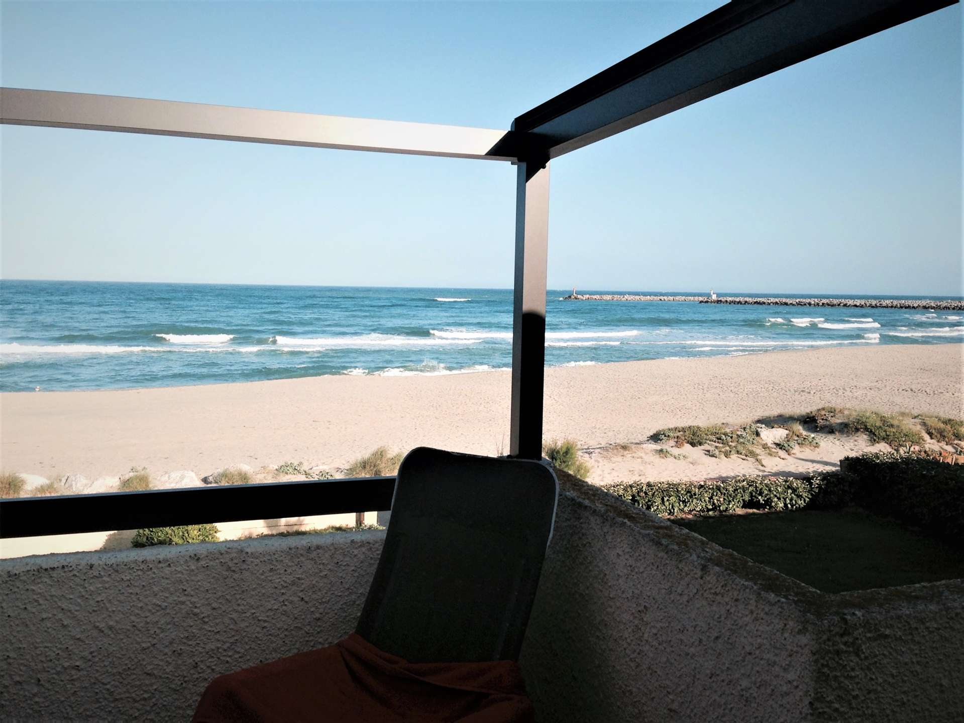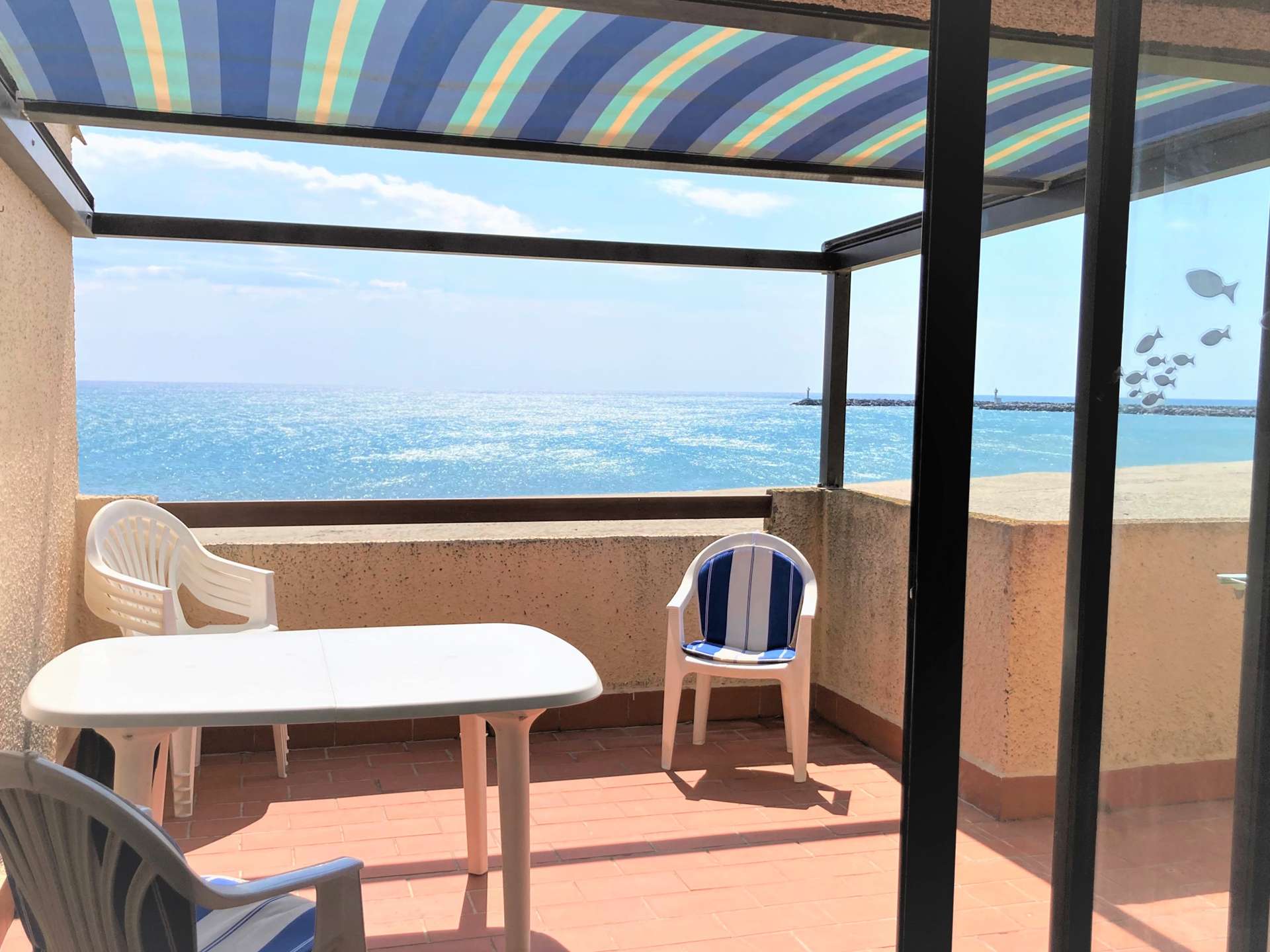 Die Vorteile dieser Ferienwohnung am Meer: Direkt am Meer, bemerkenswerte Aussicht, schöne Terrasse, Außenmarkise.