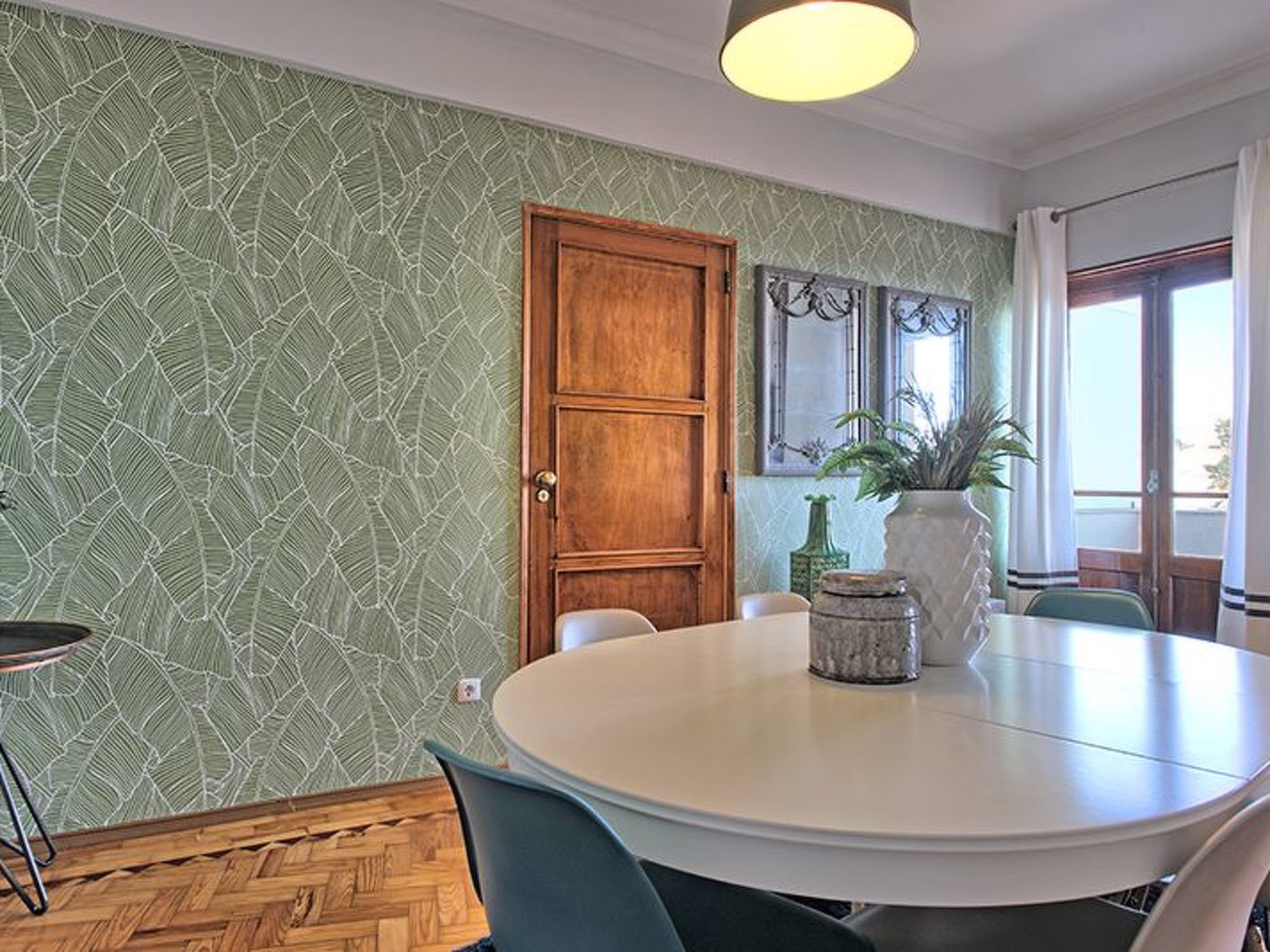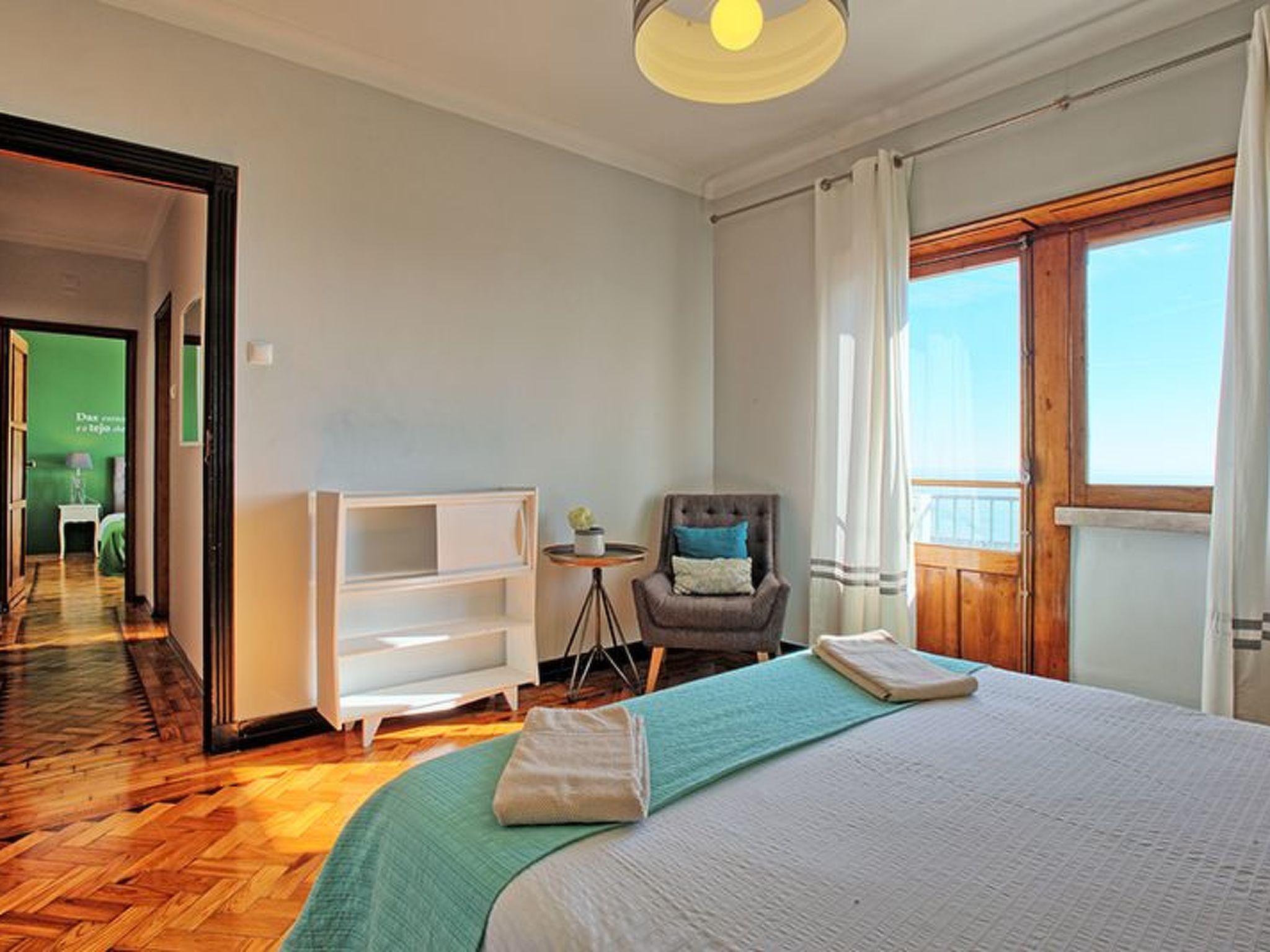 Der Außenbereich der Wohnung ist ebenso einladend und bietet drei seitliche Balkone, die dem Wohnraum ein offenes, luftiges Gefühl verleihen - einer davon mit Blick auf den Tajo, so dass die Gäste die malerische Umgebung genießen können, ohne den Komfort ihrer vorübergehenden Wohnung verlassen zu müssen. Trotz der zentralen Lage ermutigt das Fehlen von Grillmöglichkeiten die Gäste dazu, die lokale kulinarische Szene zu erkunden, was einen echten Geschmack der lebendigen Esskultur Lissabons verspricht.