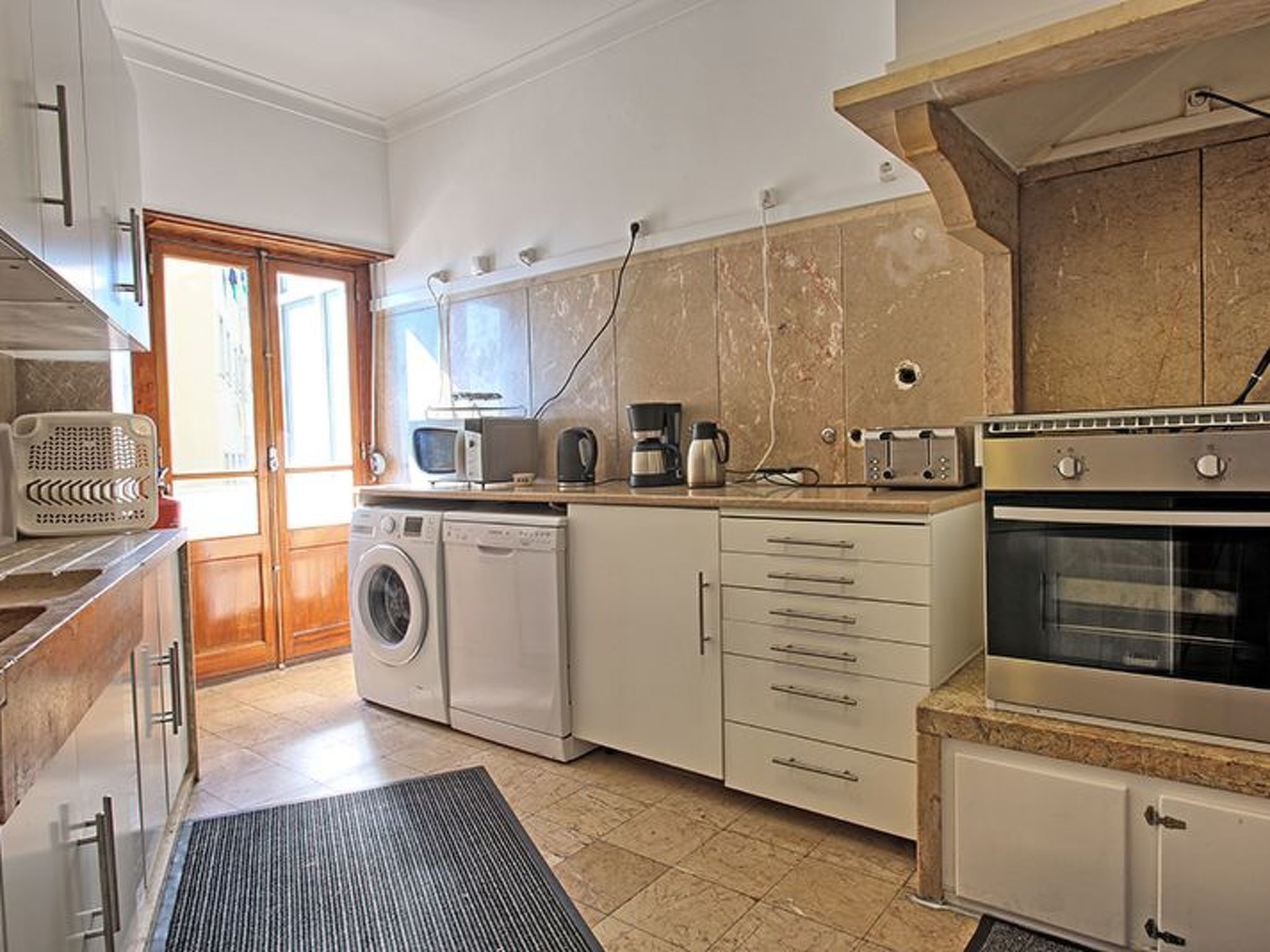 In der Wohnung erwartet die Gäste eine Vielzahl von Annehmlichkeiten, die einen komfortablen Aufenthalt garantieren. Die Einrichtung ist mit den wichtigsten Geräten und Funktionen ausgestattet, einschließlich einer Waschmaschine, die ausschließlich den Gästen zur Verfügung steht, damit auch längere Aufenthalte so angenehm wie am ersten Tag sind. Für diejenigen, die gerne ihre Mahlzeiten zubereiten, ist die Küche mit einem Geschirrspüler, einer Filterkaffeemaschine, einem Wasserkocher und mehr als fünf Ventilatoren ausgestattet, um das Ambiente während des gesamten Aufenthalts kühl und angenehm zu halten.