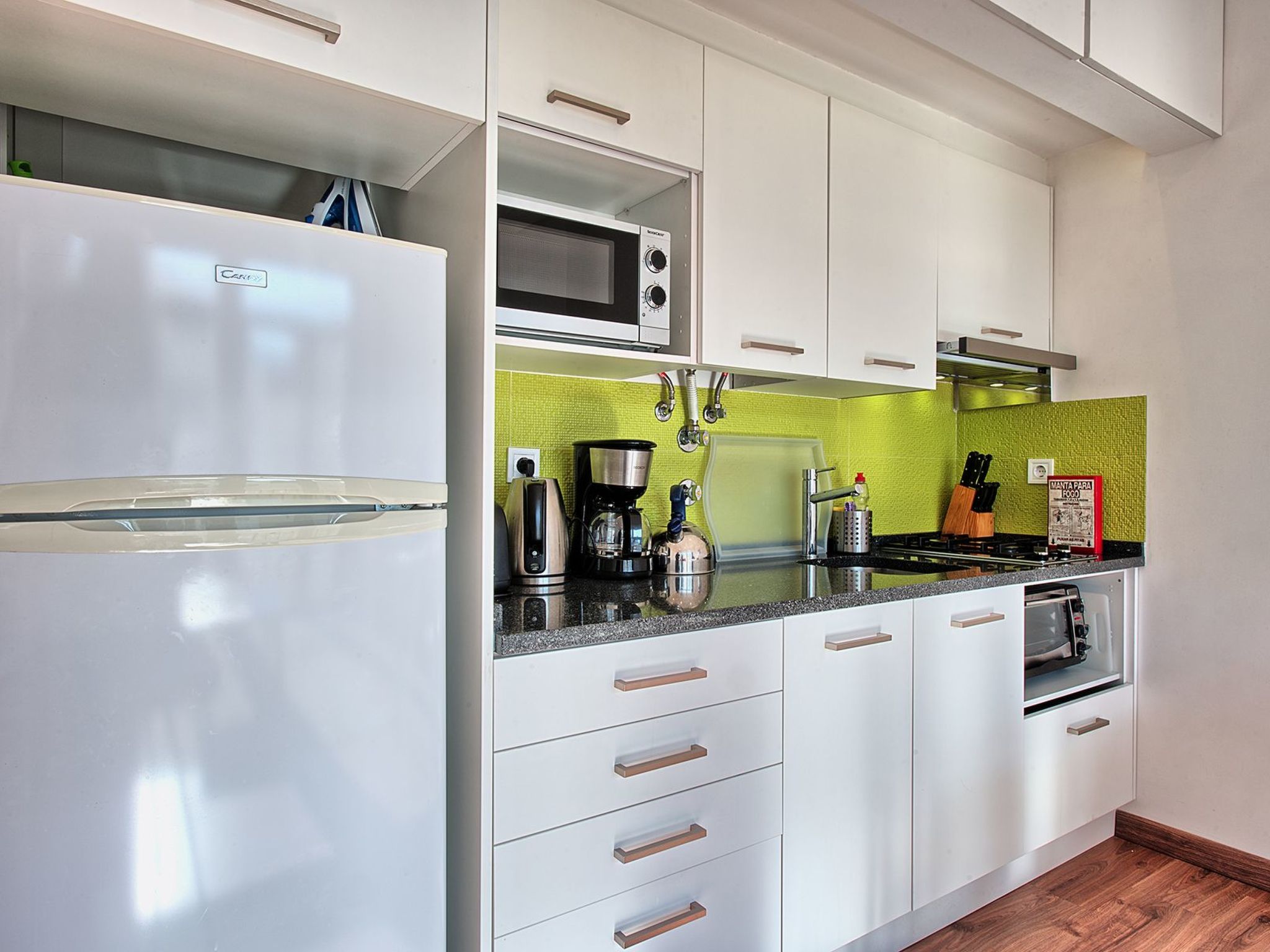 Im Inneren bietet diese Wohnung einen komfortablen und bequemen Lebensraum, perfekt geeignet für bis zu 4 Gäste. Die gut ausgestattete Küche mit Geschirrspüler, Filterkaffeemaschine, Wasserkocher und Minibackofen macht die Zubereitung von Mahlzeiten zum Kinderspiel. Eine Waschmaschine zur alleinigen Nutzung sorgt für zusätzlichen Komfort, ideal für alle, die ein Zuhause fern von zu Hause suchen. Ein Ventilator sorgt für ein kühles und angenehmes Raumklima und erhöht den Komfort während Ihres Aufenthalts.