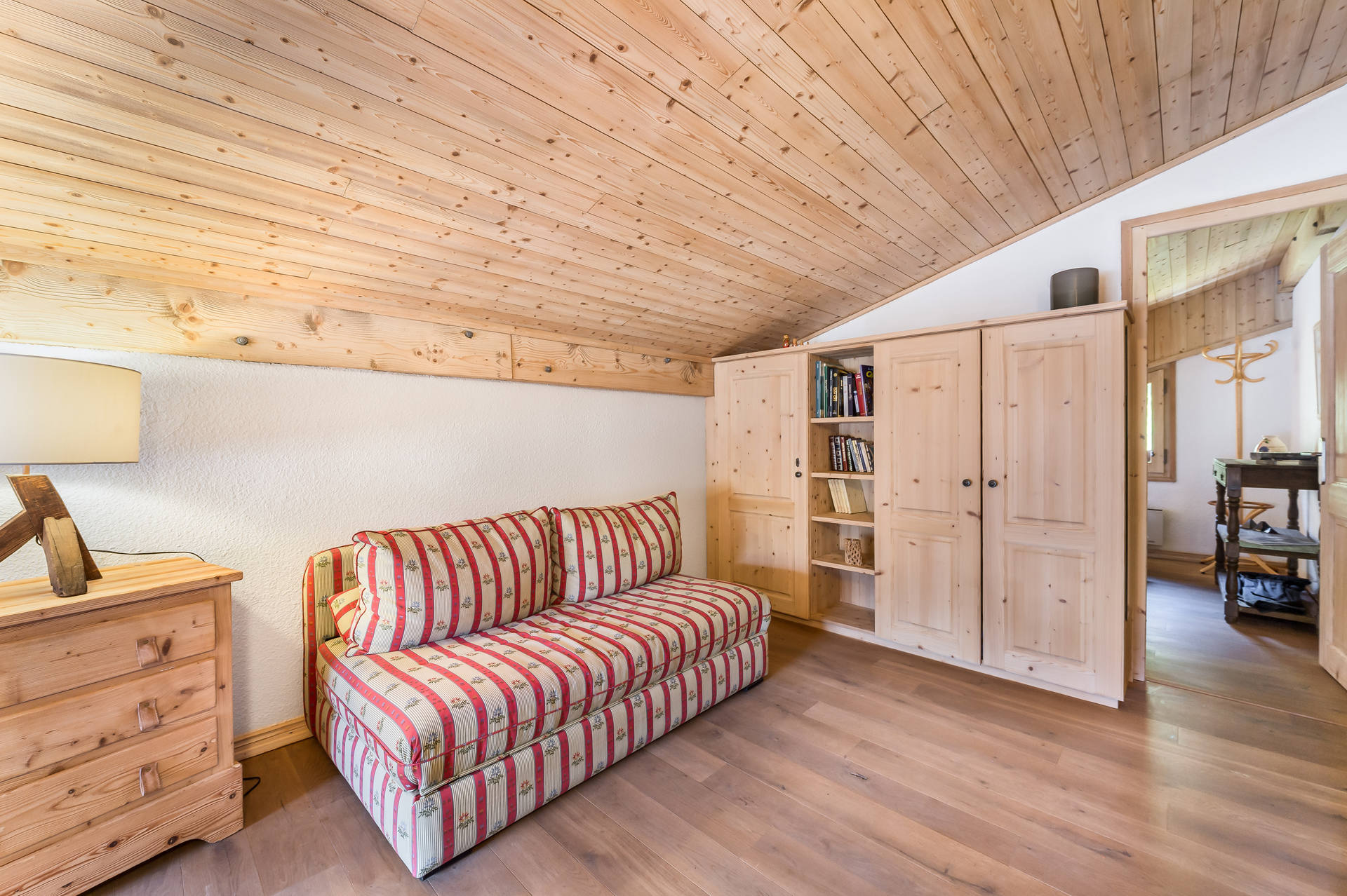 - großes Zwischengeschoss mit 140-cm-Schlafsofa, Einzel-Futon und Bürobereich,