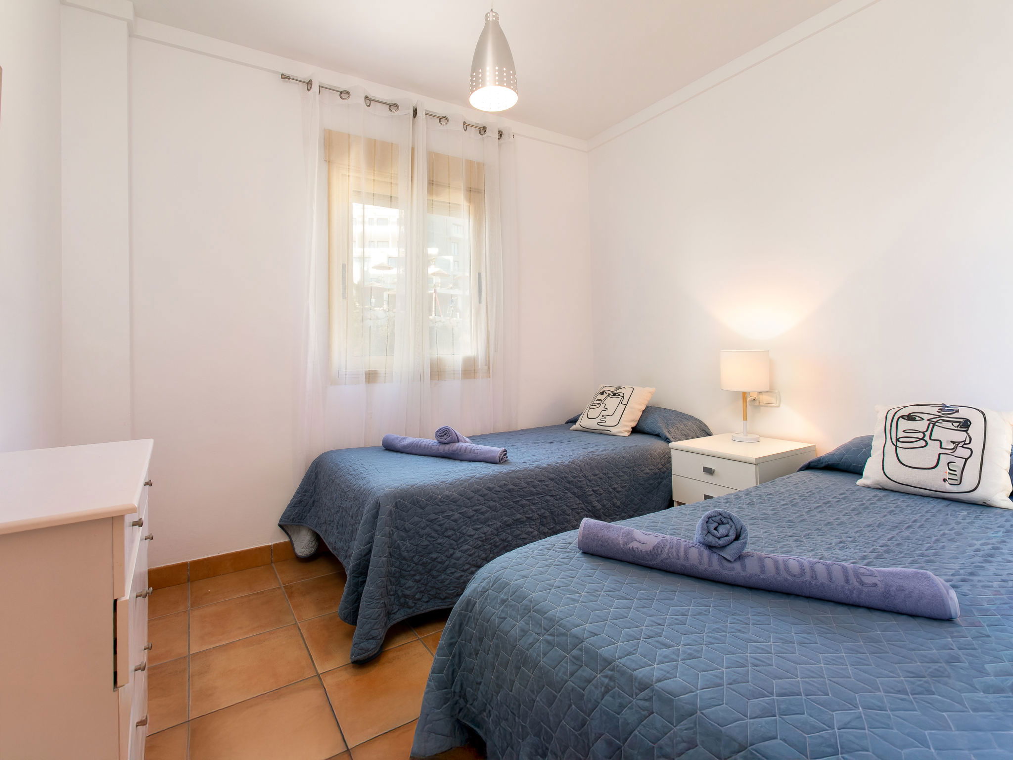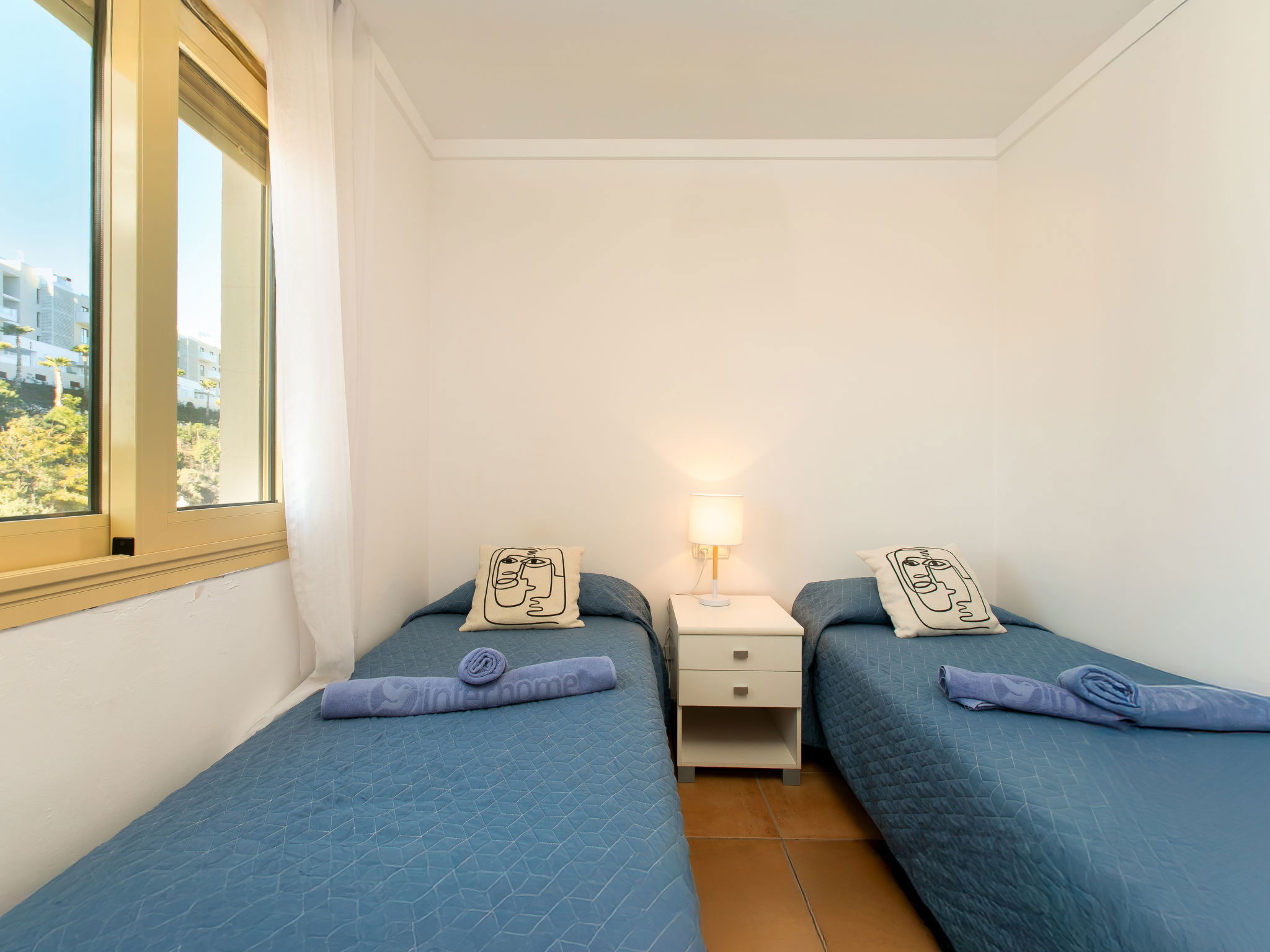 "La Alcazaba", 4-Zimmer-Wohnung 93 m2, Südostlage. Geräumig und hell, zweckmässig und komfortabel eingerichtet: Wohn-/Esszimmer mit Esstisch, Digital-TV, Internationale TV-Sender, Klimaanlage, Ventilator und Warmluftheizung. Ausgang zur Terrasse. 1 Zimmer mit 2 Betten (90 cm, Länge 190 cm), Klimaanlage, Ventilator und Warmluftheizung. 1 Zimmer mit 1 franz. Bett (180 cm, Länge 190 cm), Klimaanlage, Ventilator und Warmluftheizung. Ausgang zur Terrasse. 1 Zimmer mit 2 Betten (90 cm, Länge 190 cm), Klimaanlage und Warmluftheizung. Offene Küche (Geschirrspüler, 4 Glaskeramikplatten, Toaster, Wasserkocher, Mikrowelle, Tiefkühler, elektrische Kaffeemaschine) mit Durchreiche. Ausgang zur Terrasse. Bad/WC, Dusche/WC. Grosse Terrasse. Terrassenmöbel, Liegestühle. Panoramasicht auf das Meer, die Berge und die Ortschaft. Zur Verfügung: Waschmaschine, Wäschetrockner, Bügeleisen, Kinderhochstuhl, Babybett bis 3 Jahre, Haartrockner. Internet (WLAN, gratis). Bitte beachten: geeignet für Familien. Maximal 1 Haustier/Hund erlaubt. Feuerlöscher, kein Fahrstuhl. VUT/MA/54953 // Reg. Nr.: ESFCTU0000290130007502210000000000000000VUT/MA/549533