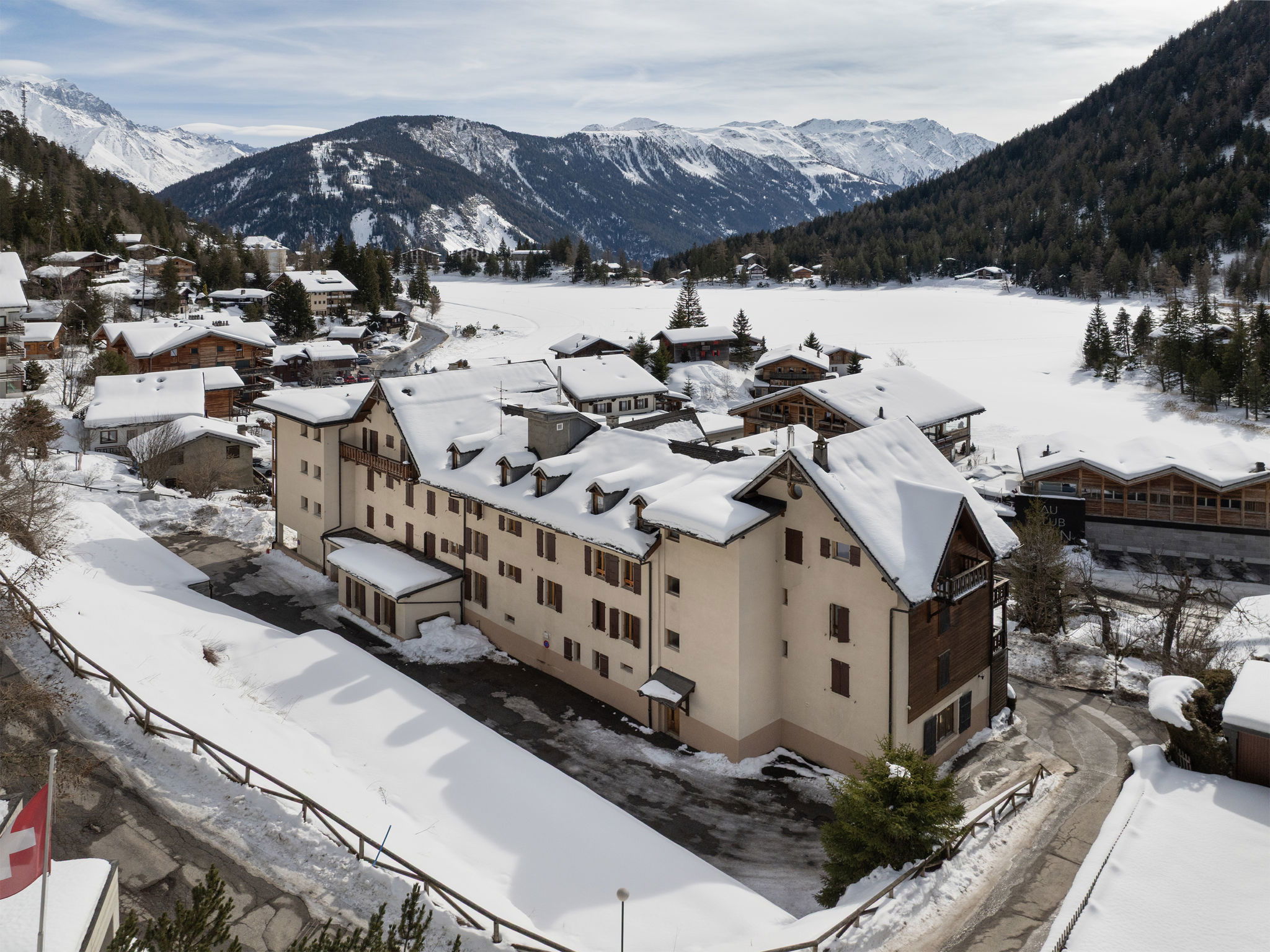 Altes, schönes Mehrfamilienhaus "La Résidence". Im Ort, 150 m vom Zentrum, ruhige, sonnige Lage, 30 m vom Waldrand, 300 m vom See. Zur Mitbenutzung: Hallenbad eckig (10 x 5 m). Steile, schmale Zufahrt bis zum Haus. Im Winter bitte Schneeketten mitbringen. Parkplatz (überdacht) beim Haus, öffentliche Parkplätze 900 m. Einkaufsgeschäft, Restaurant 100 m, Bushaltestelle "Champex-Lac" 500 m, Freibad 1 km, Badesee 300 m. Tennis 600 m, Skipisten 800 m, Skischule, Ski-Kindergarten 400 m, Schlittelbahn, Eisfeld, Kinderspielplatz 800 m, Angelmöglichkeit 100 m.