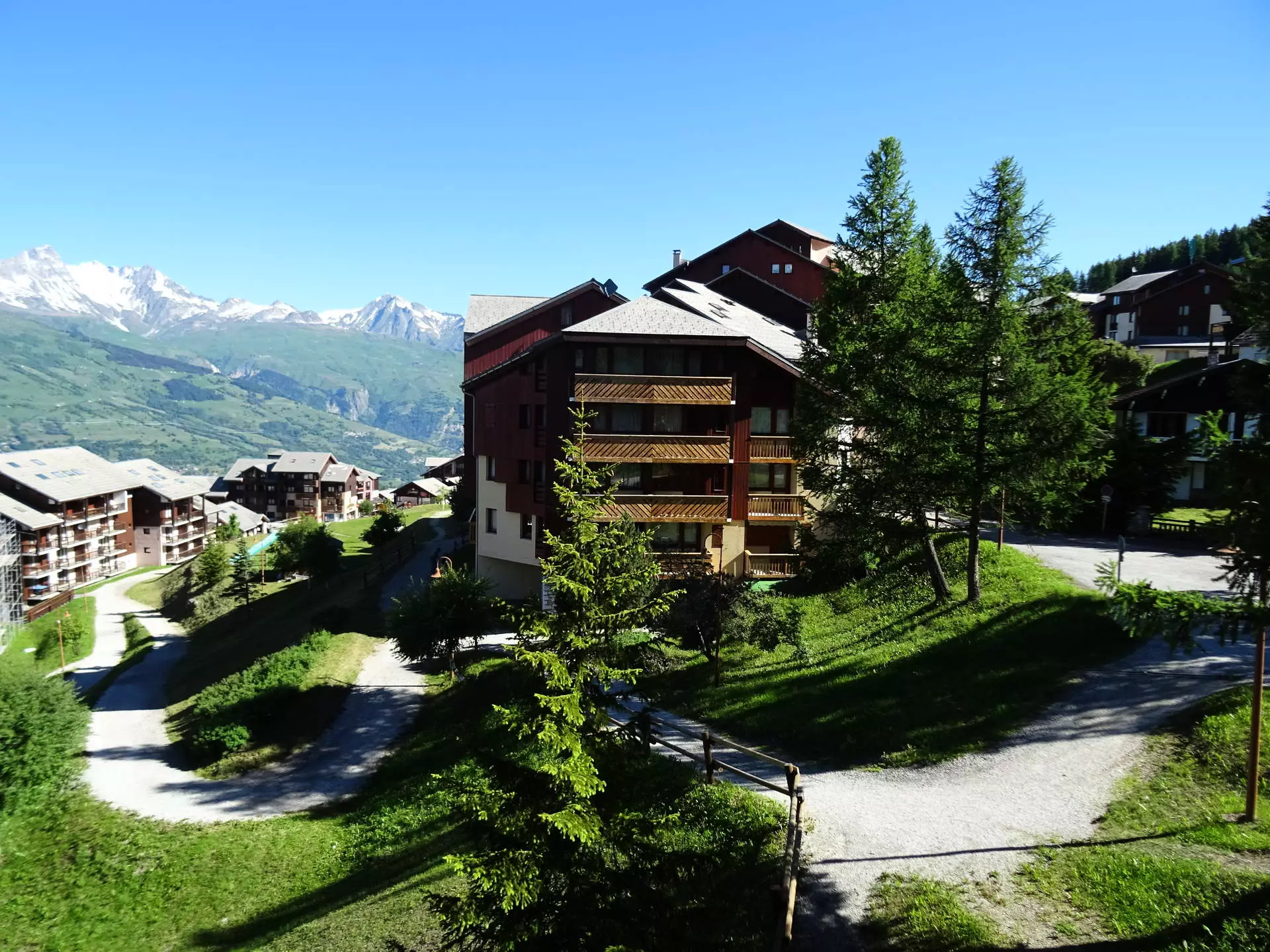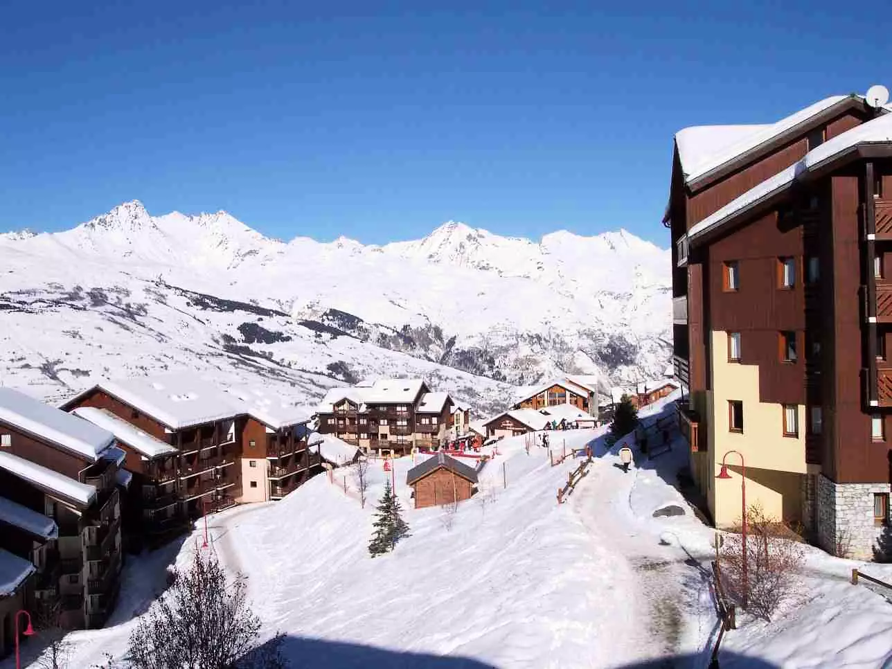 Buchen Sie für Ihren nächsten Ski- oder Sommerurlaub in Vallandry diese Studiohütte mit Ostbalkon und Blick auf die Berge und das Resort.
