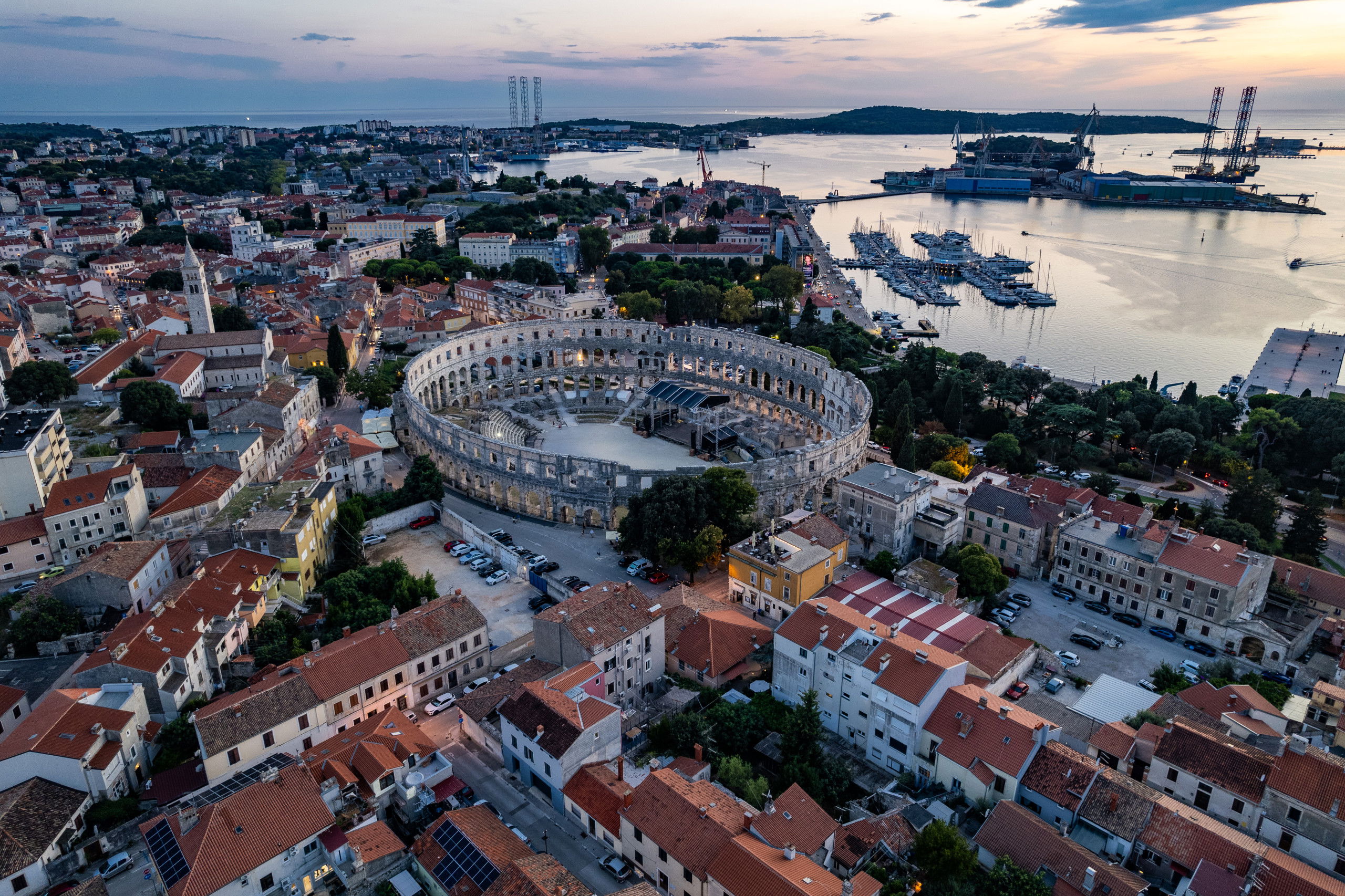 Im Stadtzentrum finden Sie viele antike römische Denkmäler, darunter den Triumphbogen des Sergius und den Augustus-Tempel.