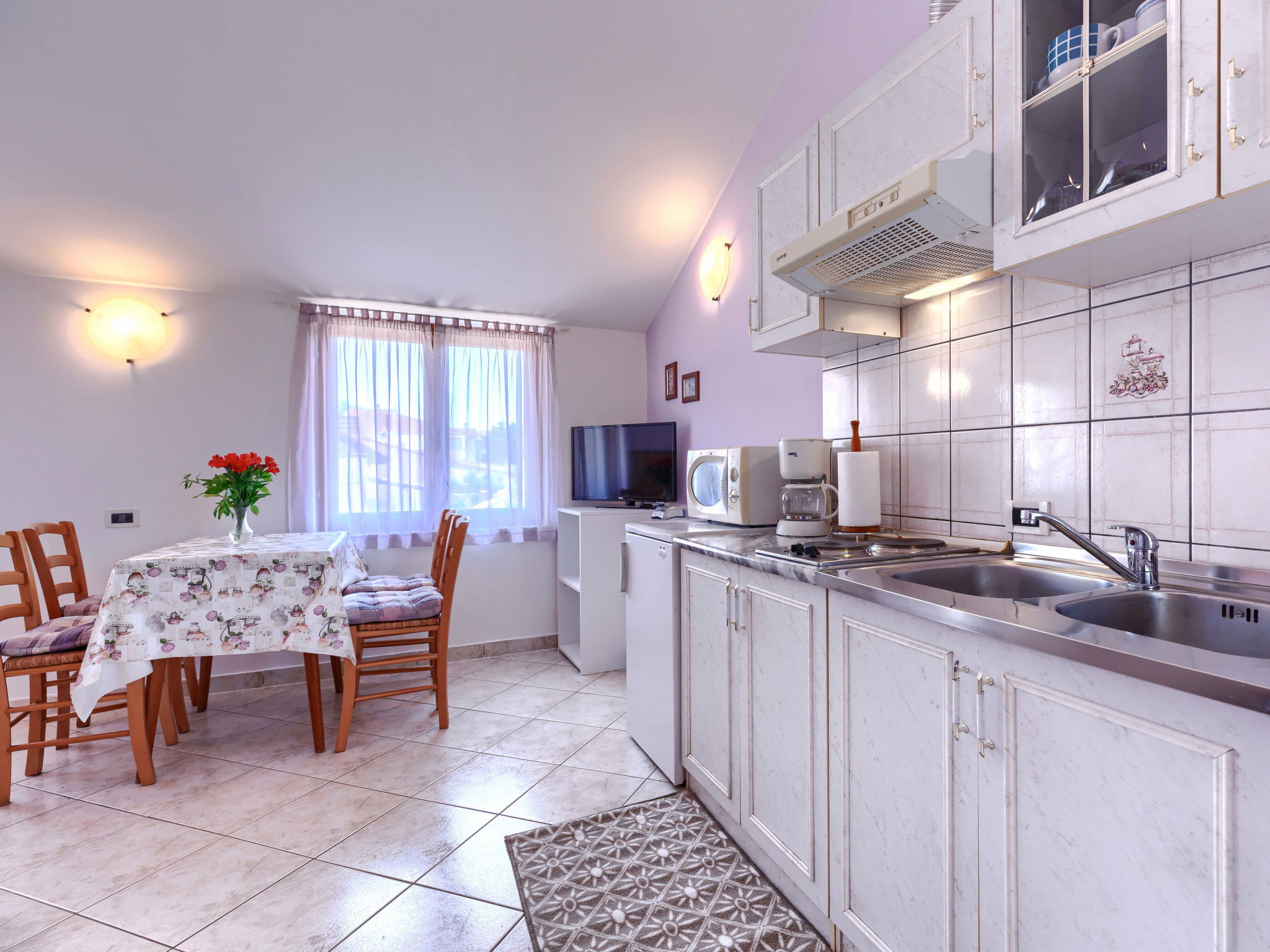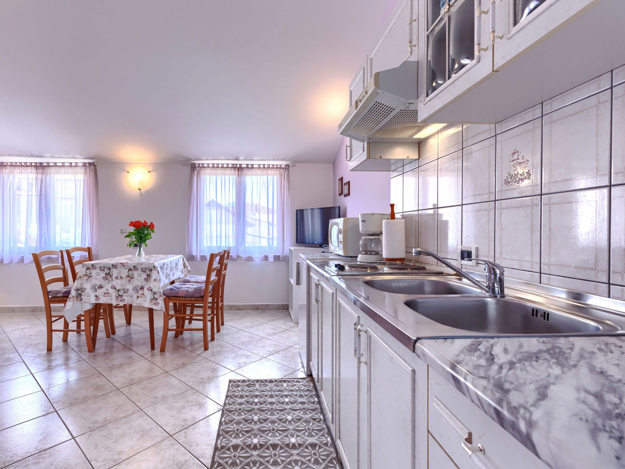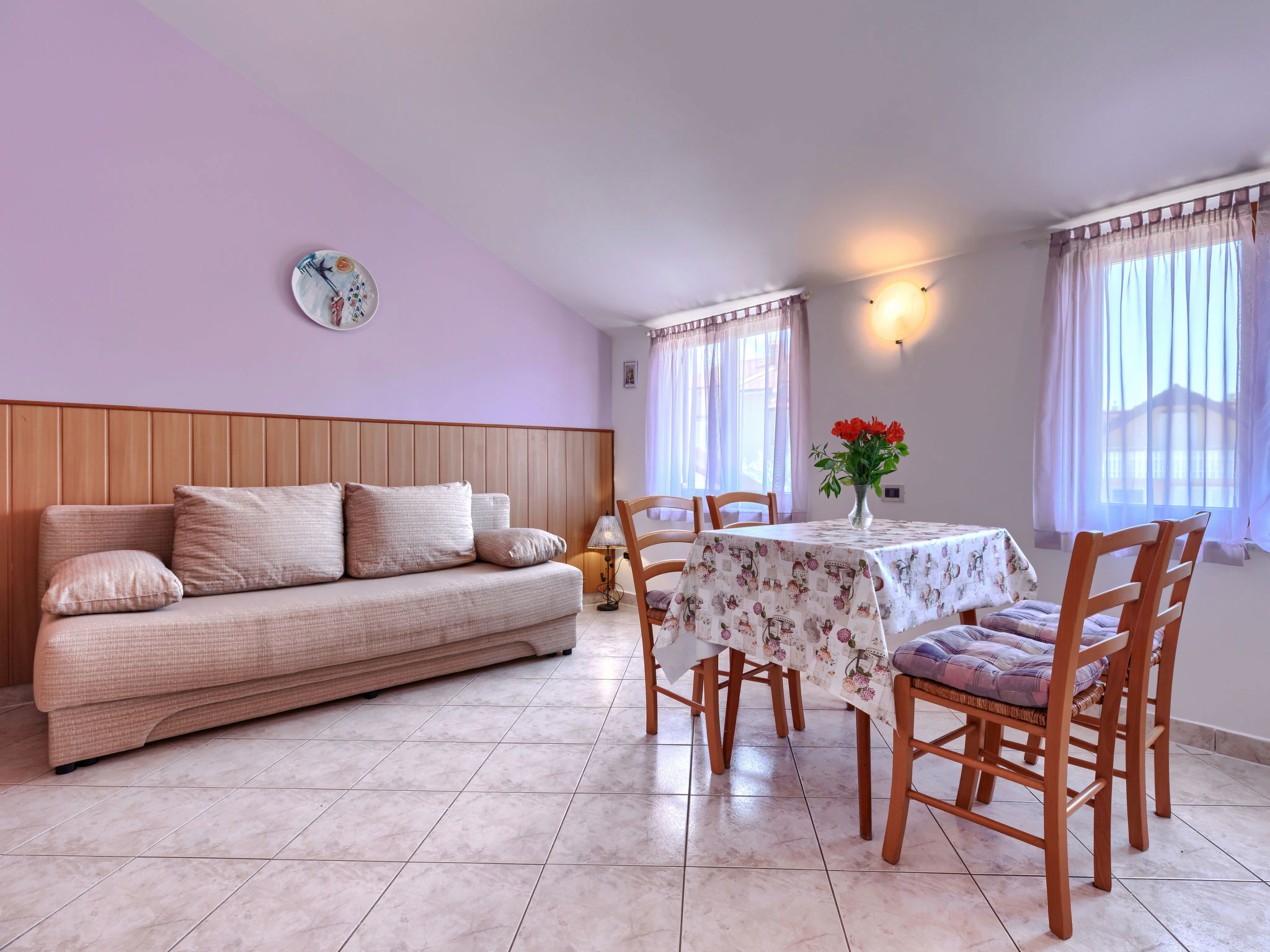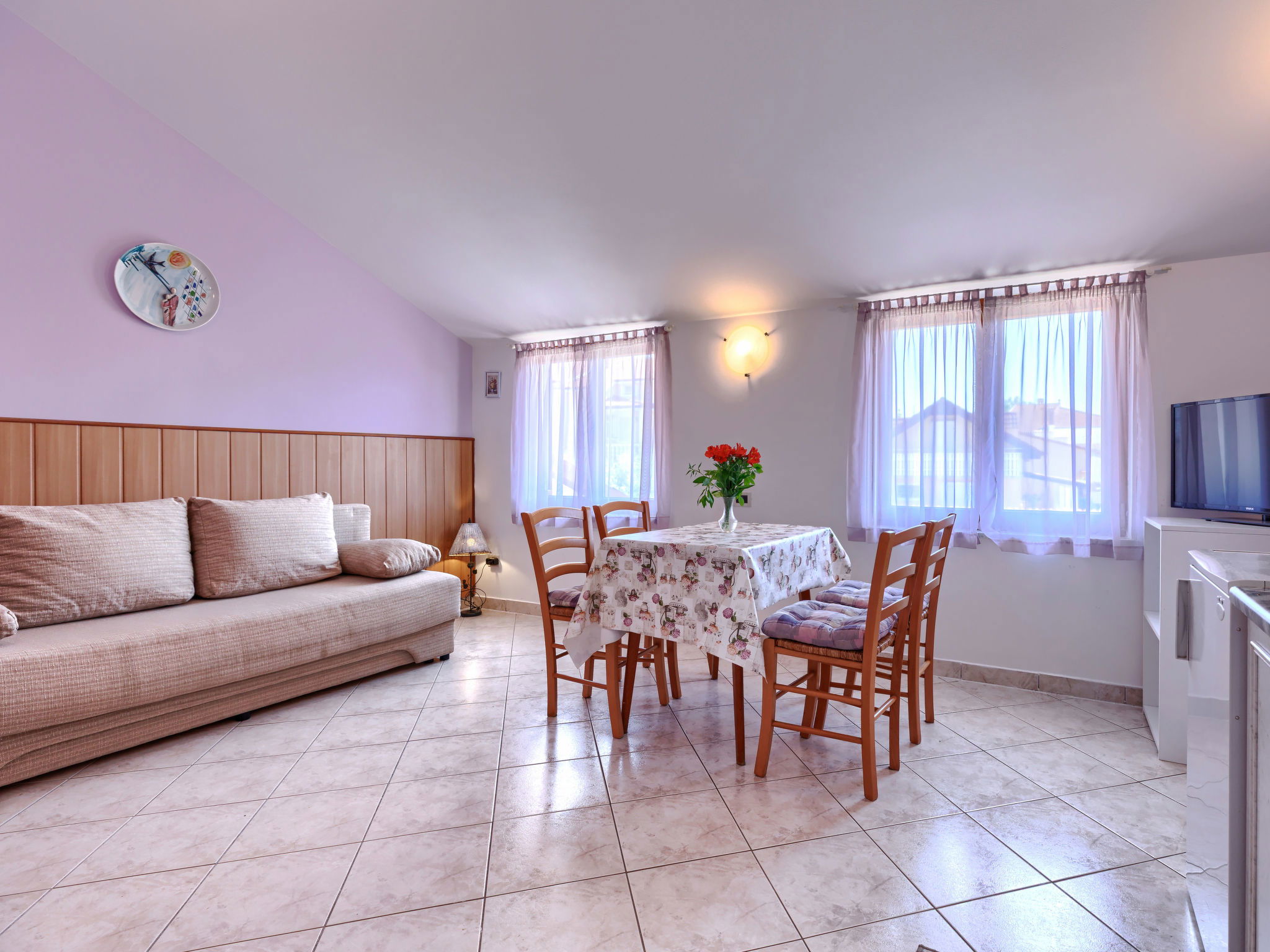 Mehrfamilienhaus "Fabiana". Im Weiler Valdebek, 2 km vom Zentrum von Pula, 4 km vom Meer, 4 km vom Strand, in einer Sackgasse. Zur Alleinbenutzung: Grundstück. Terrasse (20 m2), Gartenmöbel, Grill. Im Hause: Internetzugang. Parkplatz beim Haus auf dem Grundstück. Einkaufsgeschäft, Restaurant 50 m, Bushaltestelle 300 m, Kieselstrand 4 km, Felsstrand 4 km. Tennis 4 km. Bitte beachten: Flugplatz 10 km vom Haus.