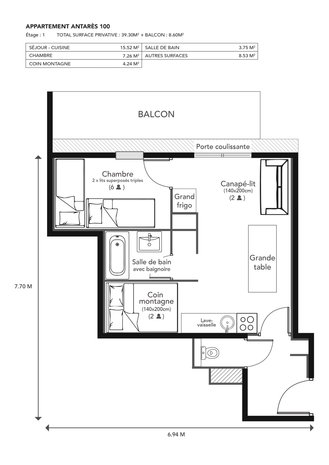 Die Unterkunft befindet sich im 1. Stock der Residenz Antarès und ist wie folgt aufgeteilt: