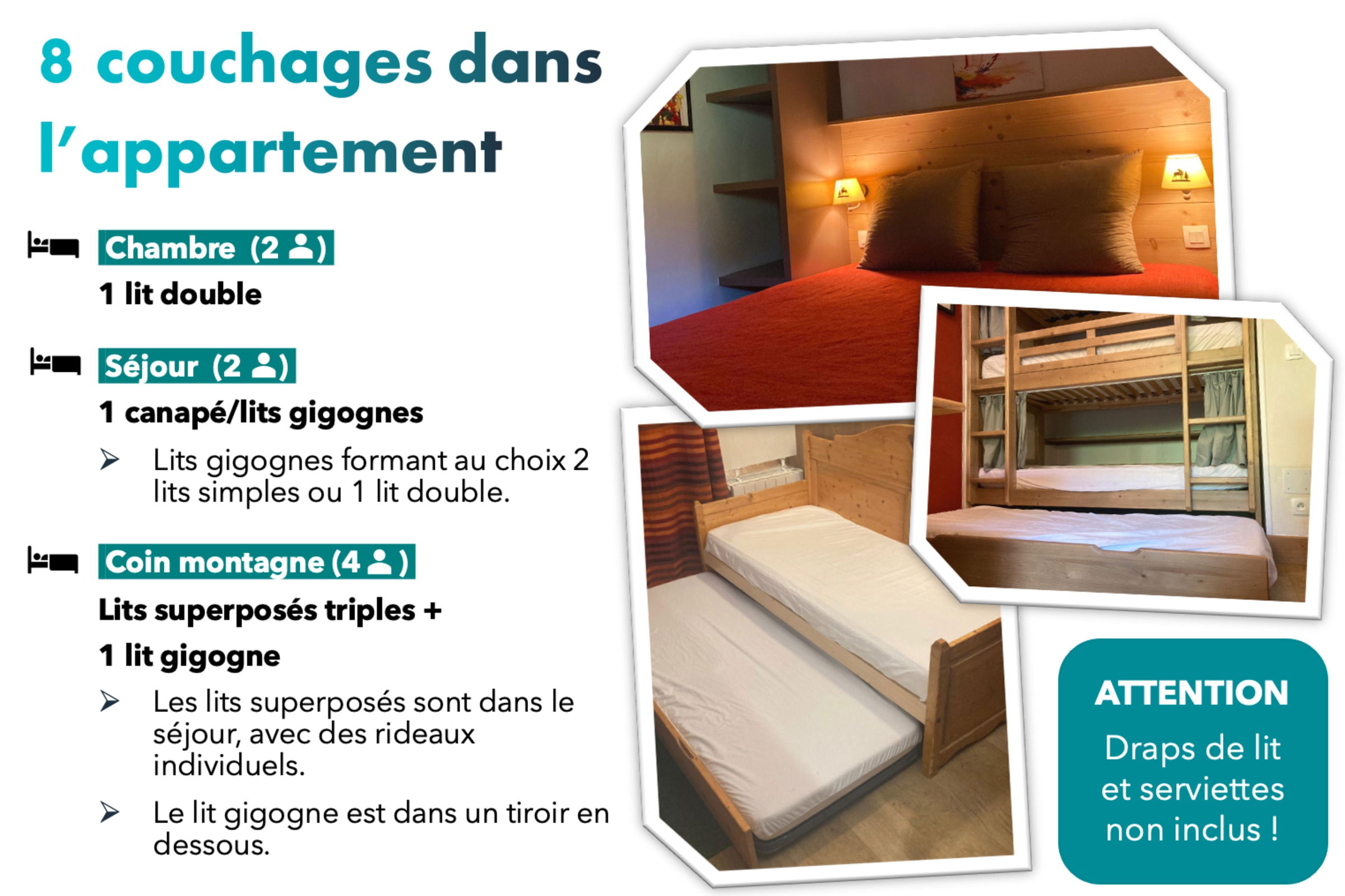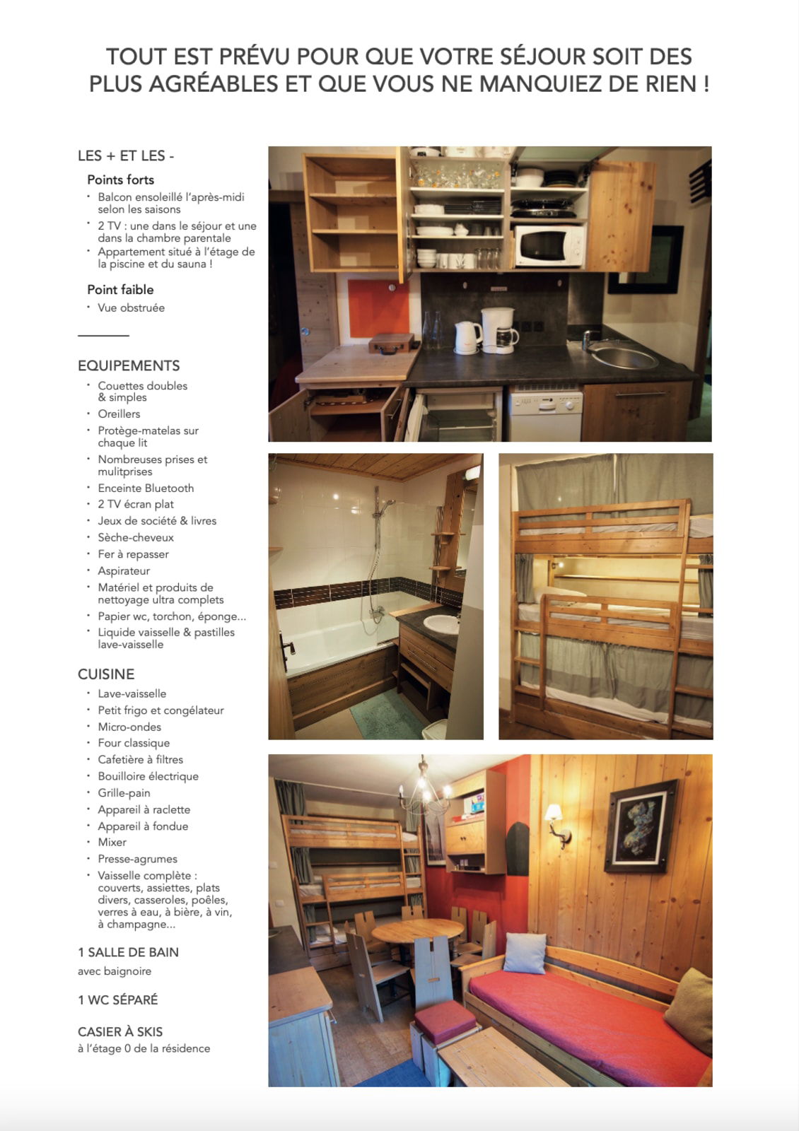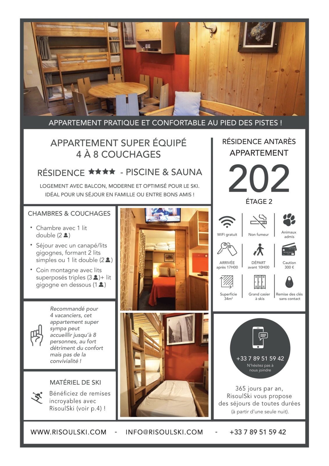 Es ist möglich, diese Wohnung mit anderen Wohnungen in derselben Residenz zu vermieten. Zögern Sie nicht, RisoulSki zu kontaktieren!
