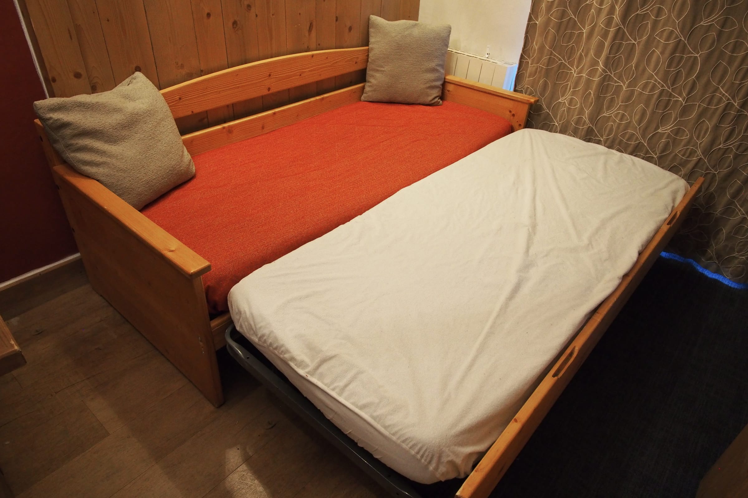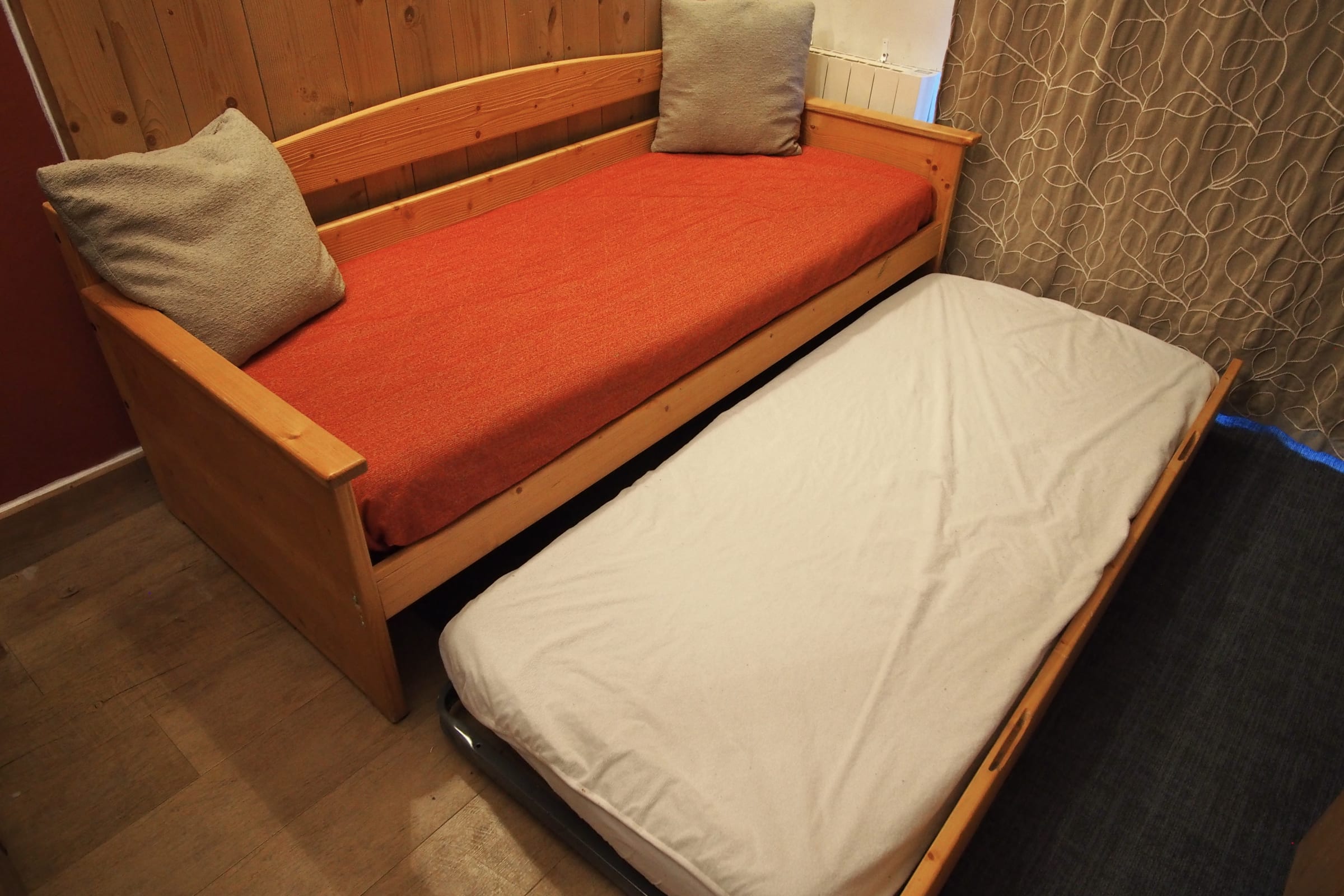 - Wohnzimmer mit drei Etagenbetten, einem Ausziehbett in der unteren Schublade und einem Sofa/ausziehbaren Betten (wahlweise 1 Doppelbett oder 2 Einzelbetten)