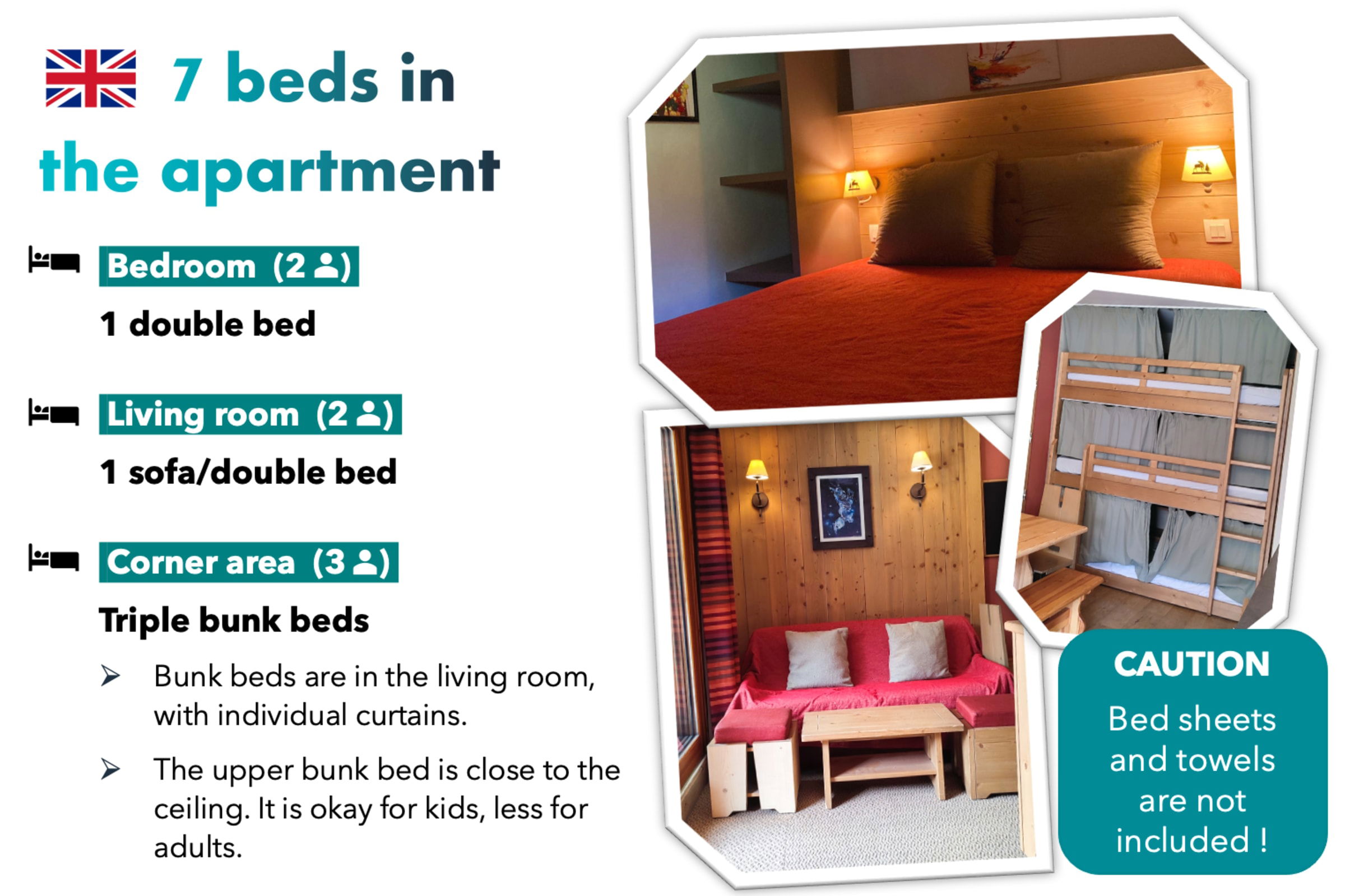 Die Kurtaxe (0,88€/Pers./Nacht) ist nicht im Preis inbegriffen. Die Zahlung ist nach der Buchung bei RisoulSki fällig.