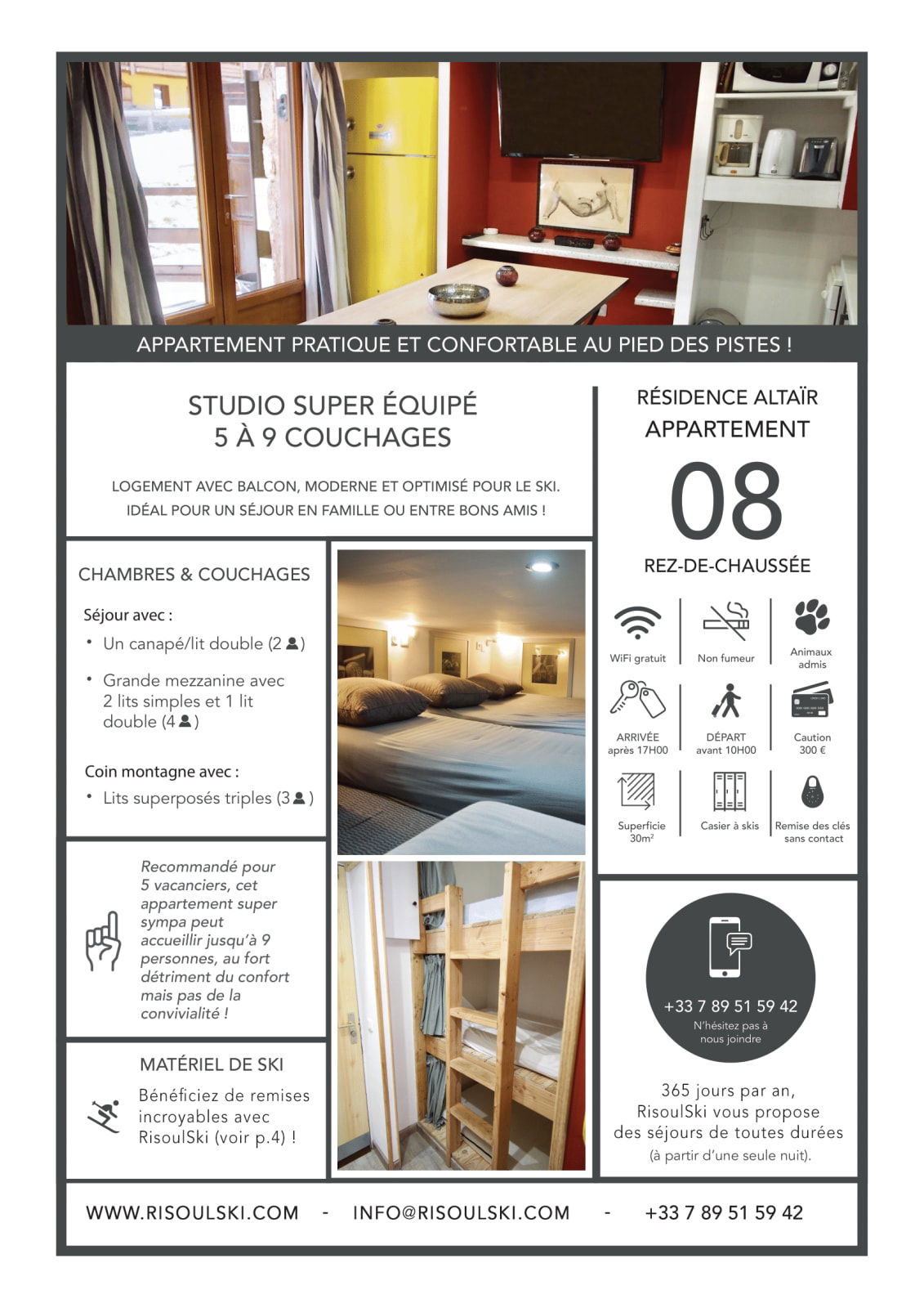 Es ist möglich, dieses Apartment mit anderen Apartments in derselben Residenz zu kombinieren. Zögern Sie nicht, RisoulSki zu kontaktieren!