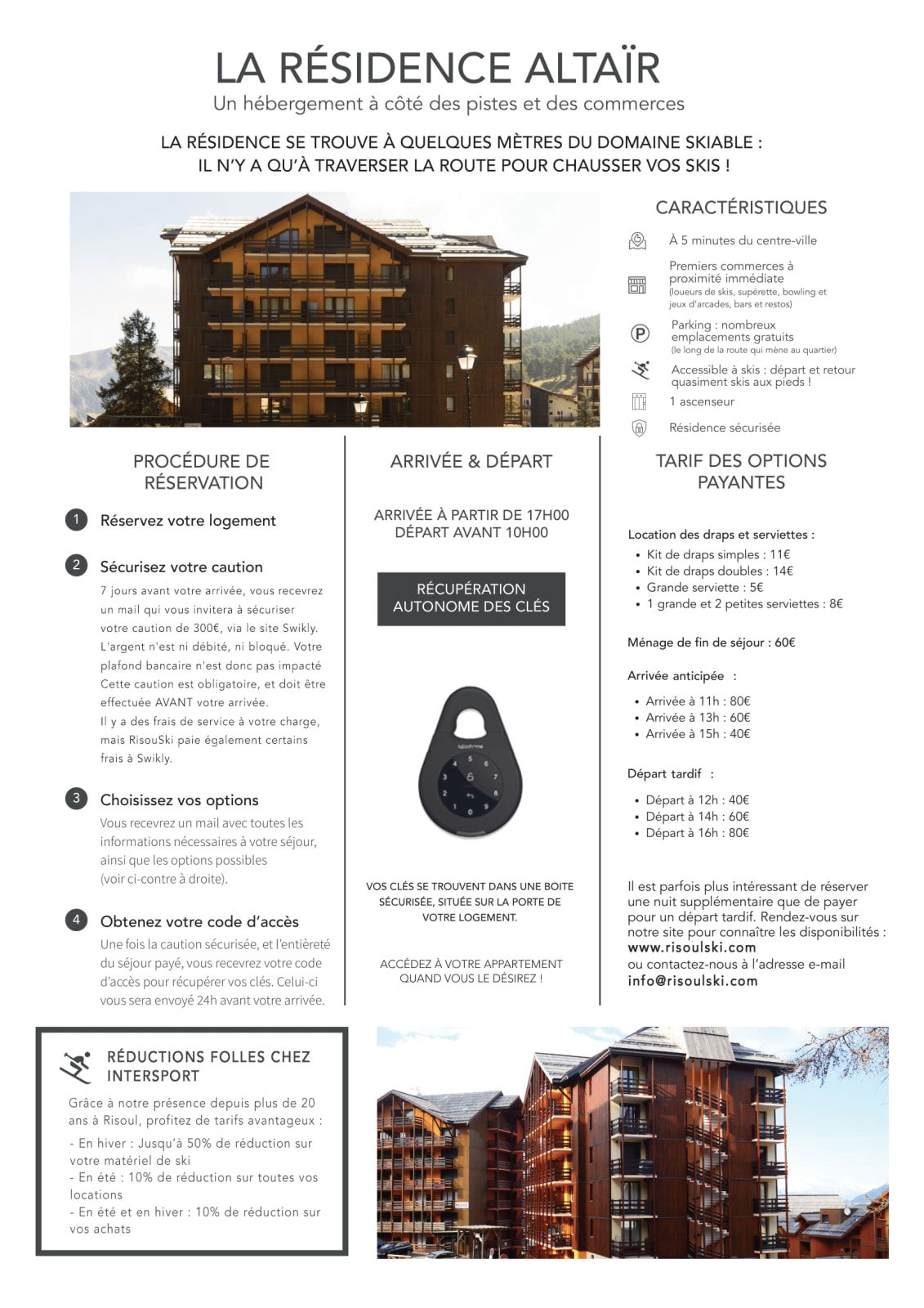 Die Kurtaxe (0,88€/Pers./Nacht) ist nicht im Preis inbegriffen. Die Zahlung ist nach der Buchung bei RisoulSki fällig.